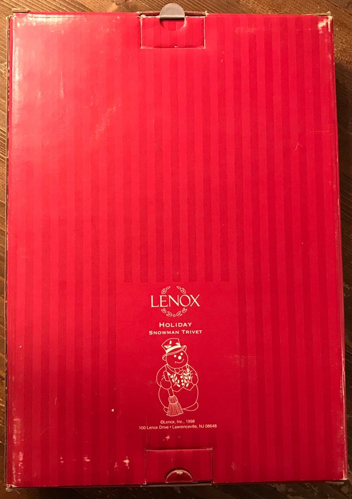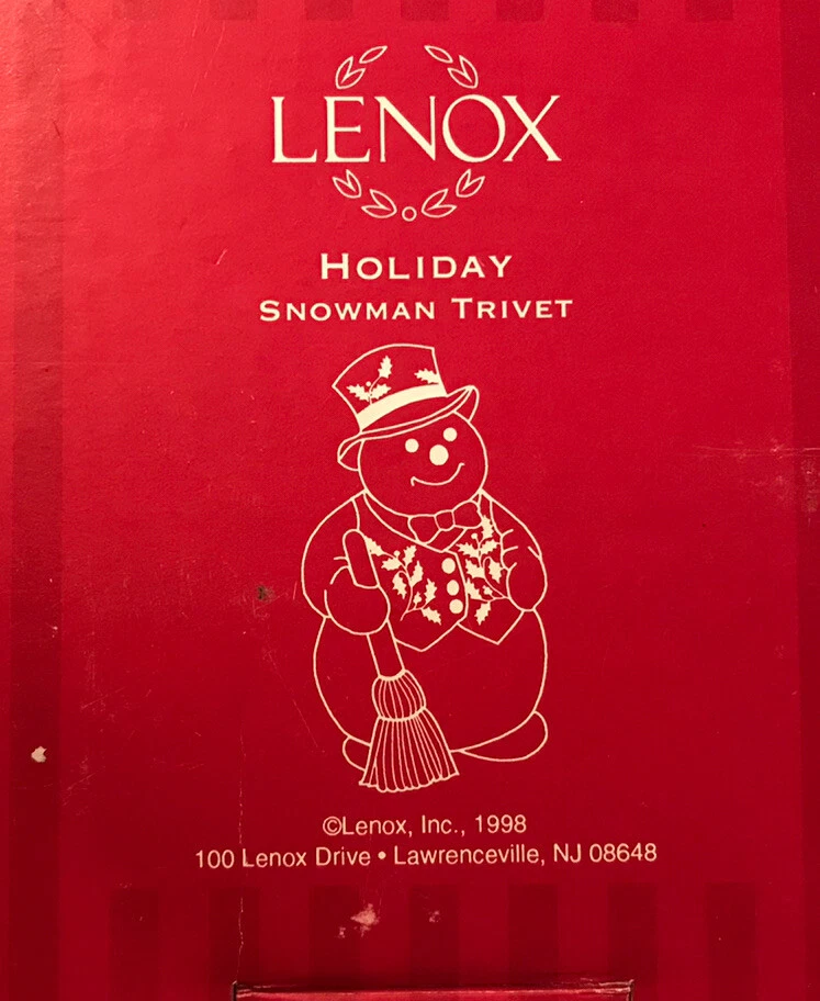 This Lenox For The Holidays Snowman Trivet is a charming addition to any holiday collection. Crafted in 1998, it features a festive snowman design and measures 9-1/2” x 5-1/2” x 5/8”. Perfect for holiday entertaining, it can be used to protect your surfaces from hot dishes or as a decorative display piece. The trivet is made by renowned brand Lenox and is a collectors' item. Its intricate details and beautiful design make it a great gift for anyone who loves the holiday season. Add this Snowman Trivet to your collection and bring a touch of holiday cheer to your home!