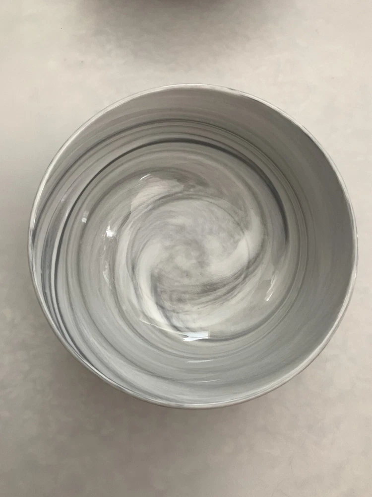Very good condition. This set of 2 Lenox Gray Marble Wave Porcelain Bowls features a stylish Marble Swirl pattern, making them a chic addition to any dining table. The bowls are round in shape and have a diameter of 5 1/4 inches, perfect for serving soups, salads, or snacks. They are made of high-quality porcelain, ensuring durability and a microwave and dishwasher-safe design for convenient use. Perfect for everyday meals or special occasions, these Lenox bowls combine elegance with functionality for a versatile addition to your dinnerware collection.