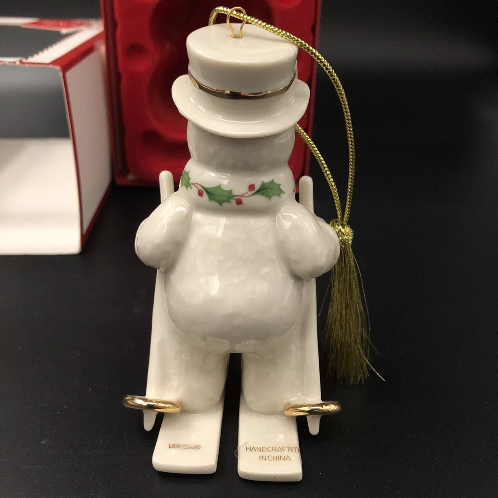 Lenox Happy Holly Days Fresh Powder Snowman Skiing Ornament Christmas Measurements: 3.5” tall Condition is Used…No Chips, No Cracks..boxed..see Photos Shipping USPS
