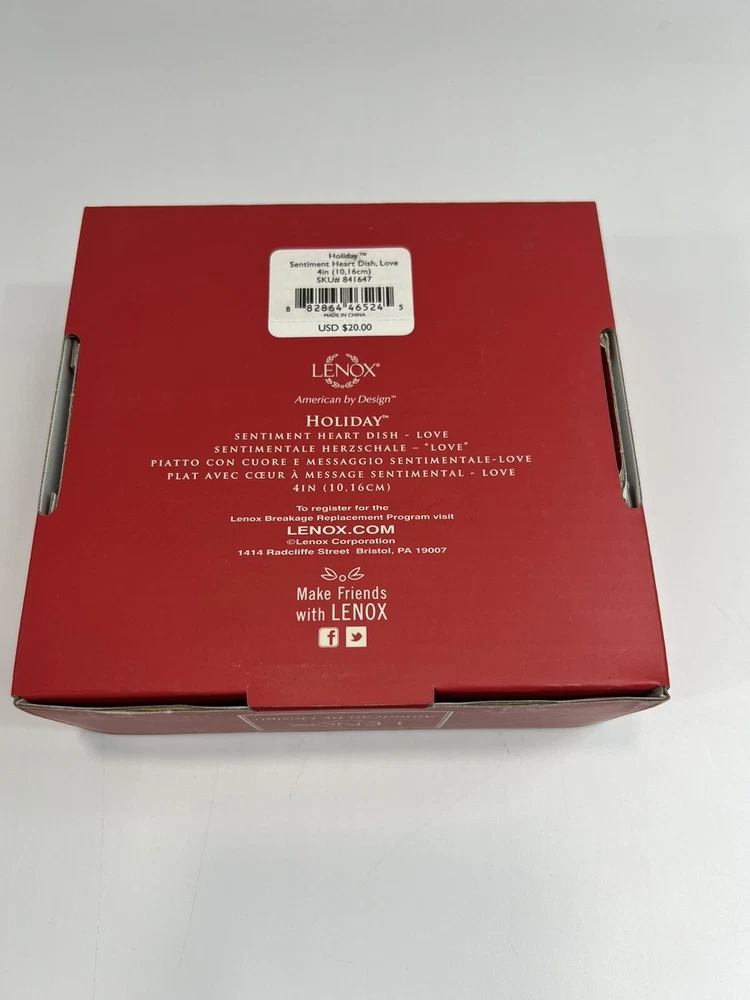 Lenox Heart with Ribbon Holiday Love Christmas Candy Dish 4”
