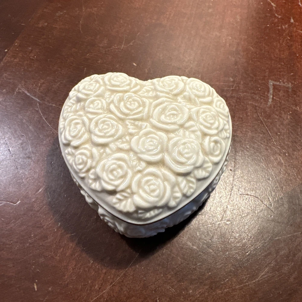 This Lenox trinket box is a beautiful addition to any collection. Its heart-shaped design with roses pattern makes it a perfect gift for any occasion. The box is made of high-quality porcelain with a glossy finish, and it comes boxed for safekeeping. It is a contemporary style box that is suitable for adults, with a small size that makes it easy to carry around. The box features a rose subject, and it was manufactured in China during the 2000-2009 time period. The Lenox brand is well-known for producing high-quality collectibles, and this trinket box is no exception.
