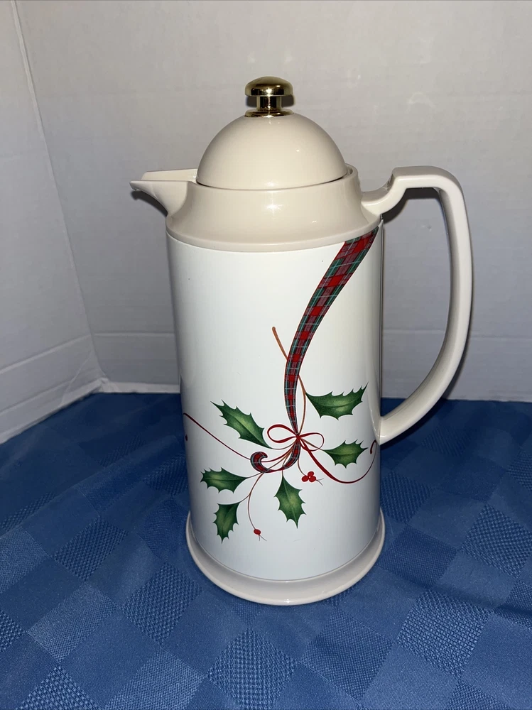 Lenox Holiday Nouveau Thermal Plastic Carafe Holly Berry Christmas Gold Accent. Excellent like new condition.