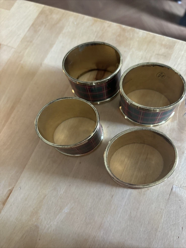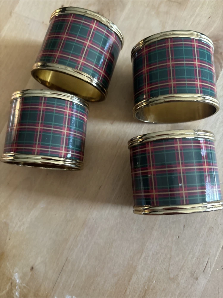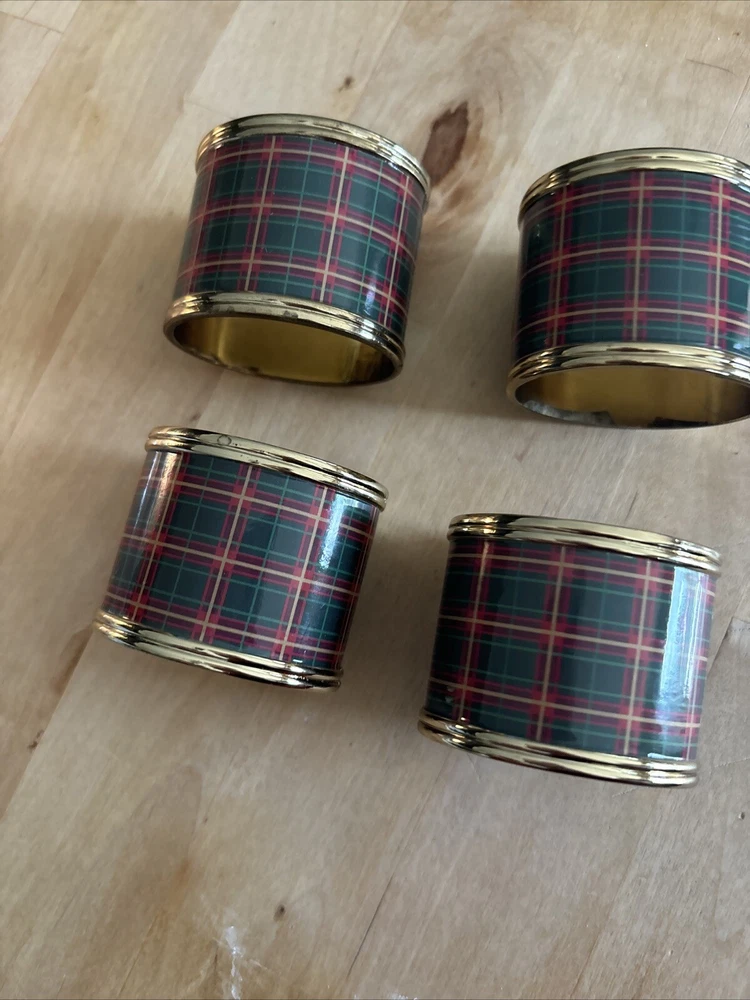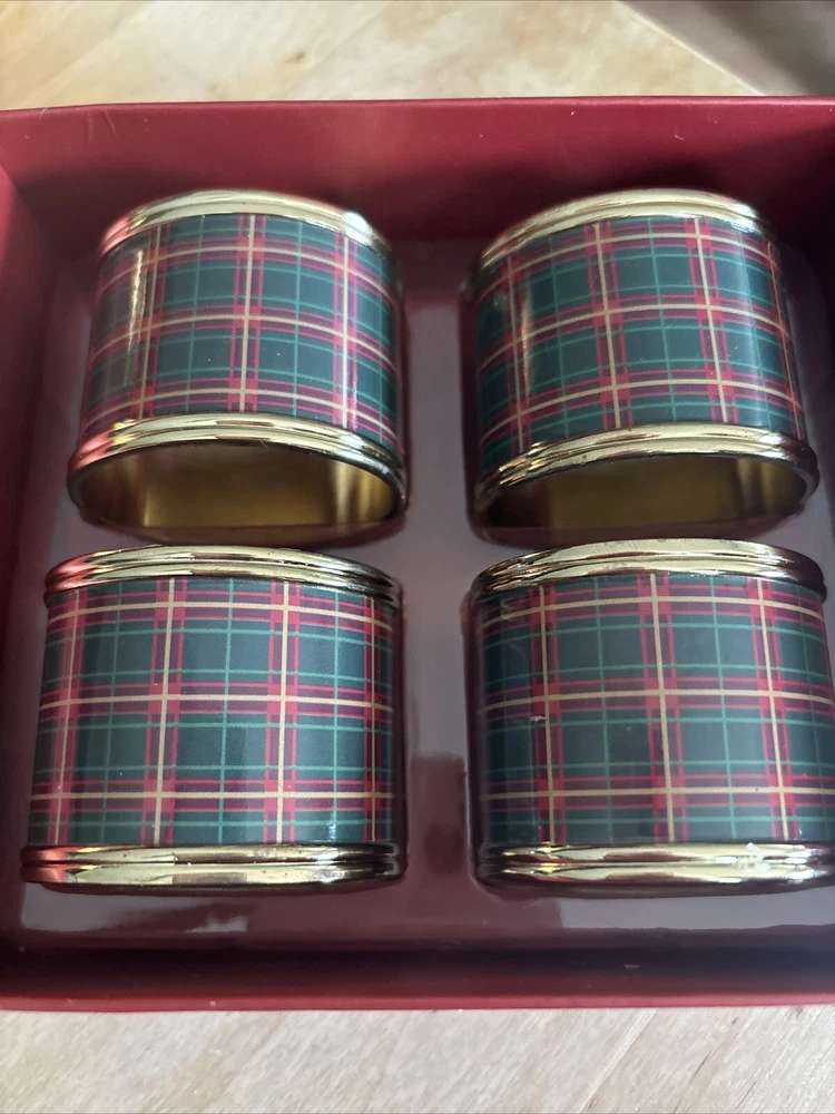 Lenox set of four plaid napkin rings. These napkin rings are perfect for use during meals with family and friends, and are sure to impress your guests. The set is a must-have for those who appreciate fine dining and want to add a touch of sophistication to their table setting. Pre-owned