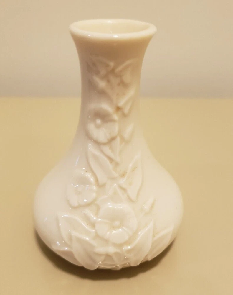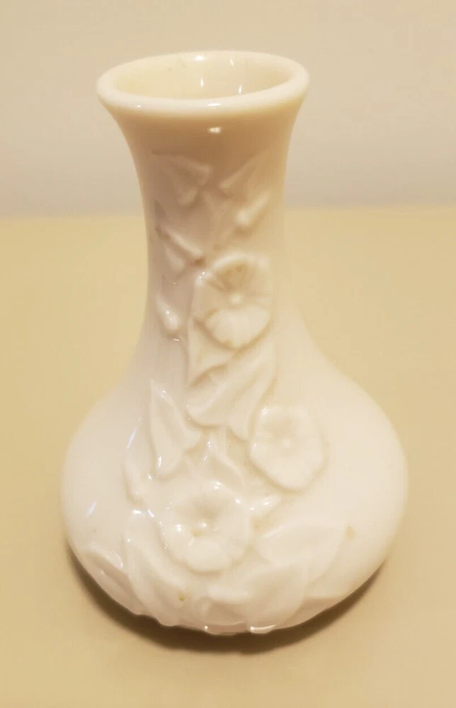 Lenox Ivory Porcelain Miniature Flower Vase Embossed Morning Glory 3.5" Tall, 8" Circumference 24k Gold Trim. Excellent condition. No chips, cracks, damage or repairs.