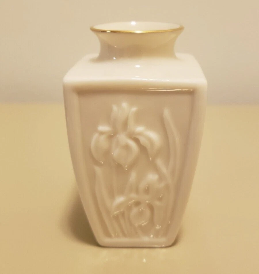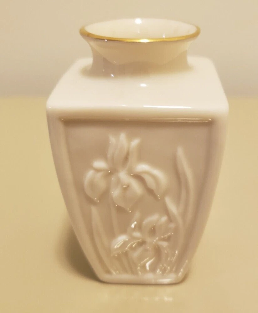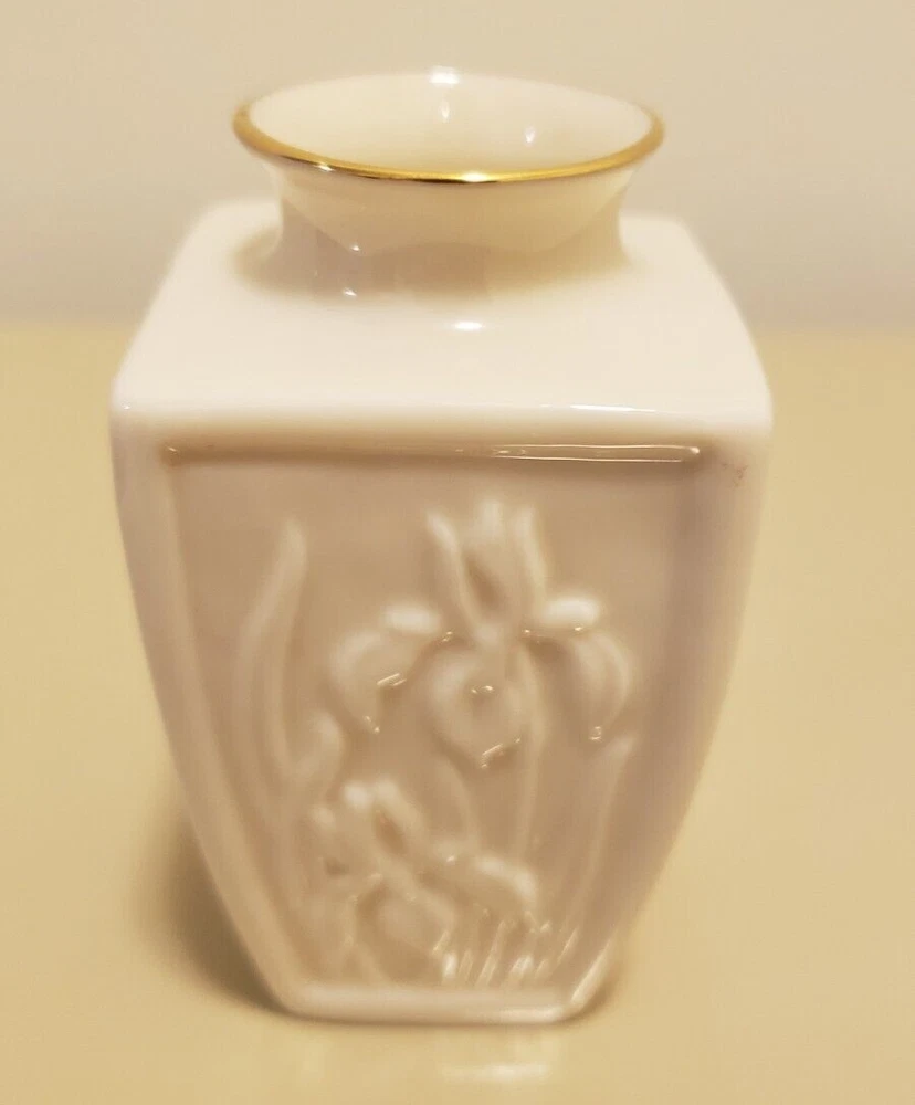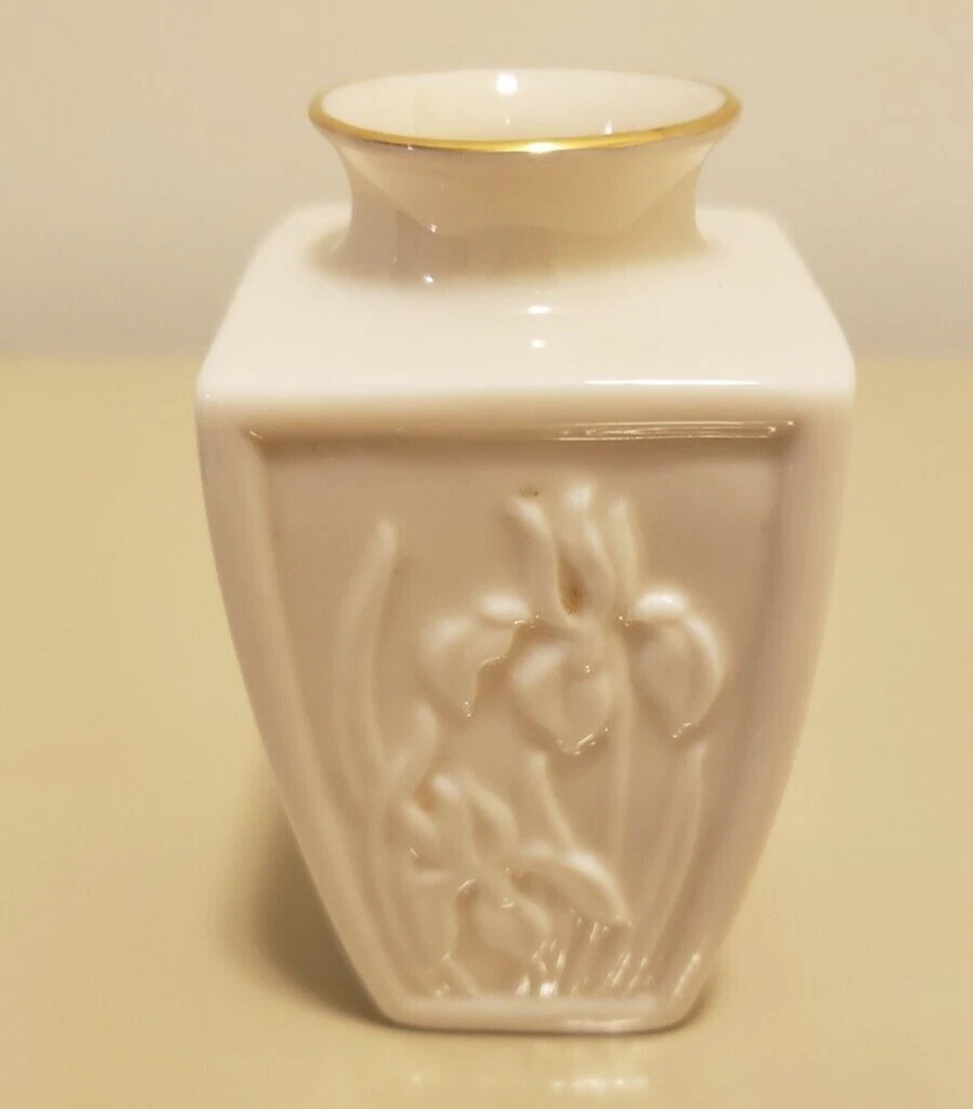 Lenox Ivory Miniature Flower Vase Floral Embossed 3"Tall, 1"Long 24k Gold Trim. Excellent condition. No chips, cracks, damage or repairs.