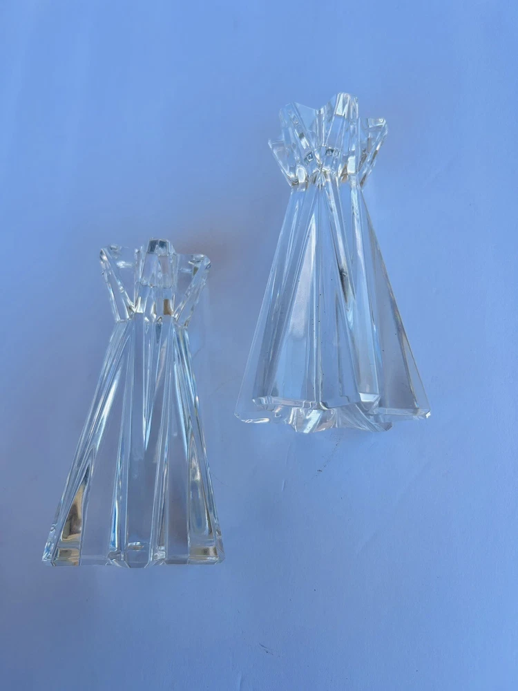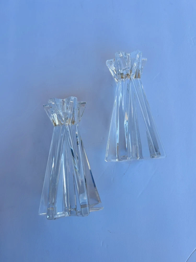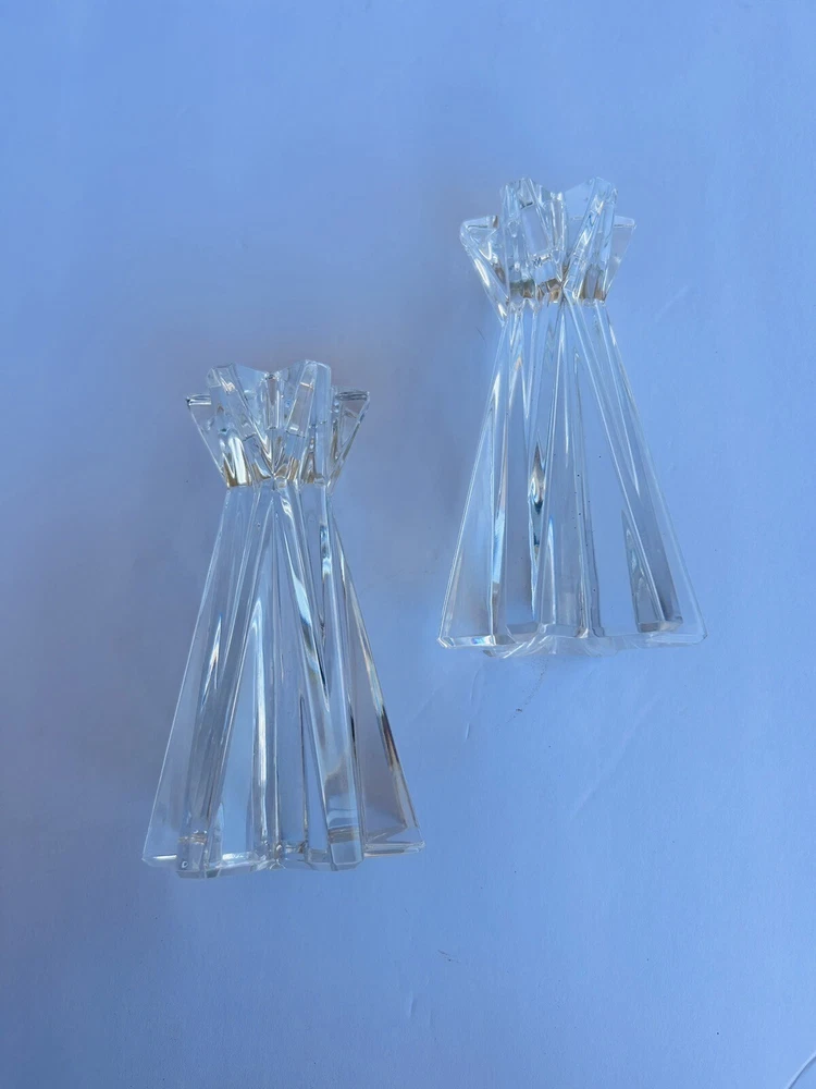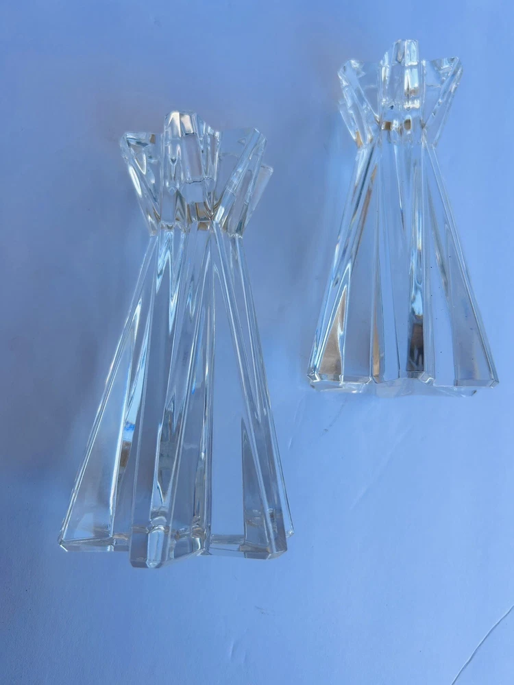 Add a touch of elegance to your home decor with this set of two Lenox Ovations Starfire Crystal Candlesticks. These contemporary style candle holders are perfect for all occasions and feature a beautiful starfire pattern that will sparkle in the candlelight. The clear crystal material adds a luxurious touch to any room, while the 6 inch length provides the perfect height for the candles. The set includes two candlesticks with crystals accents and is perfect for collectors or anyone looking to add some glamour to their home. No chips or cracks Beautiful set 8.14.24