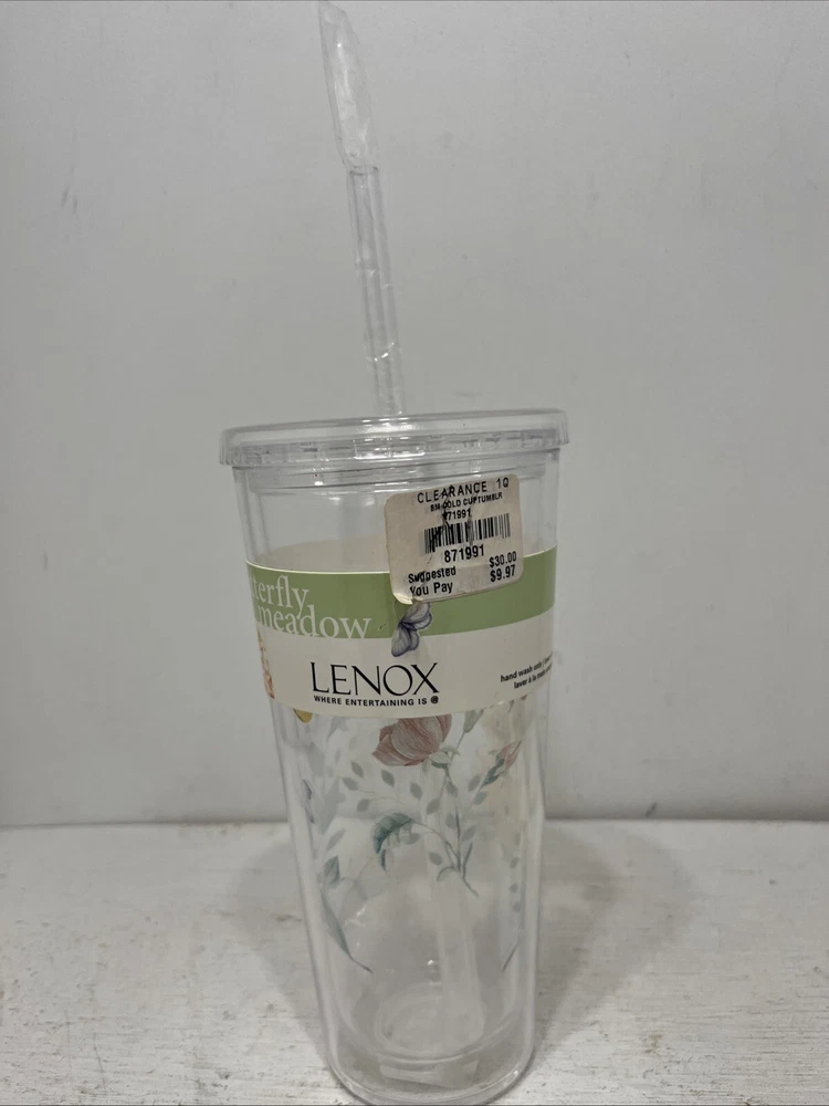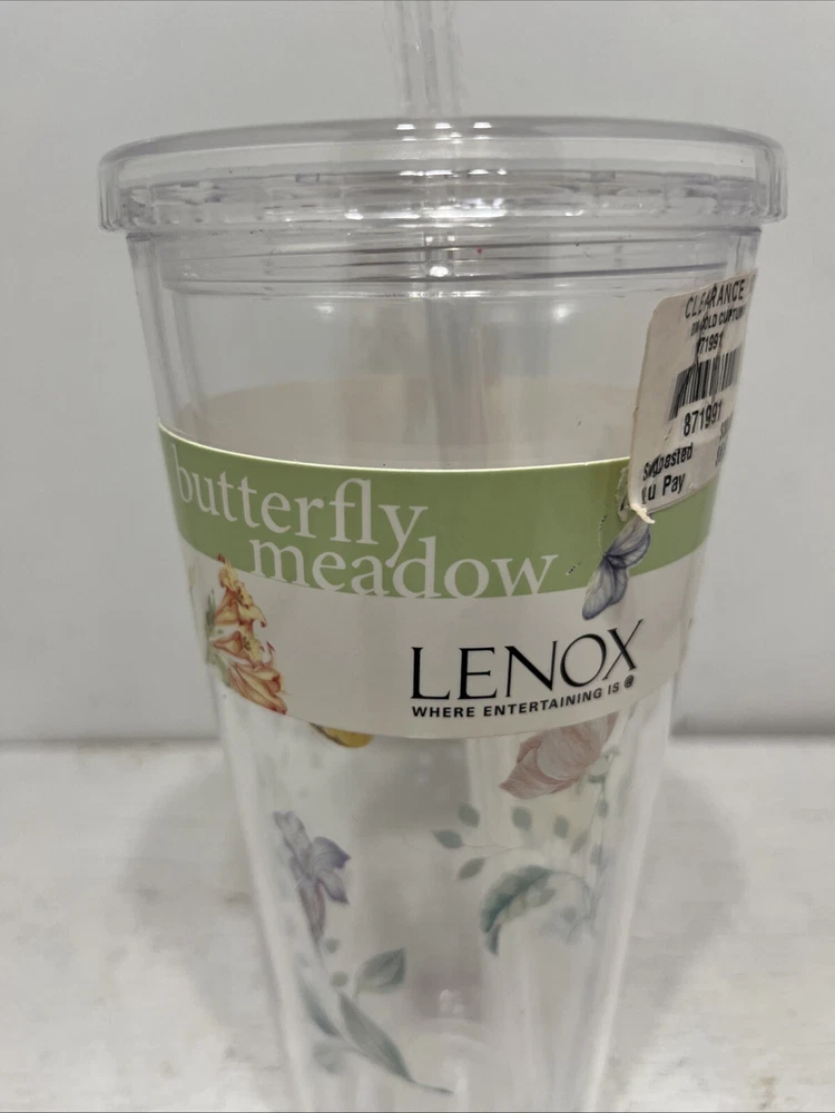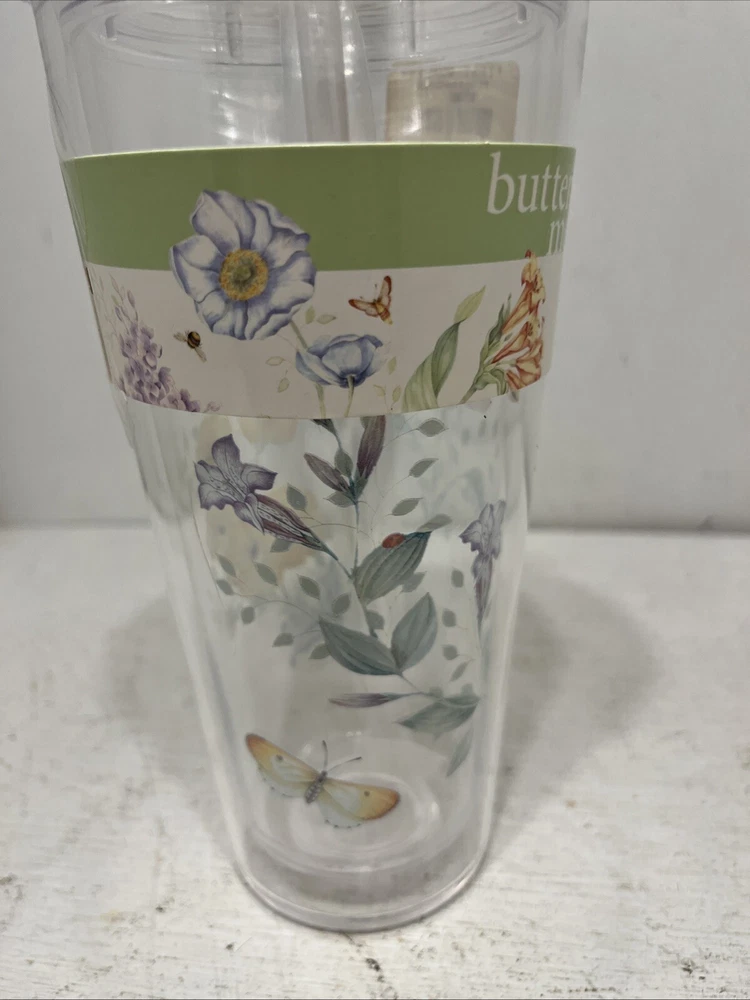 NWT Lenox Plastic Cold Cup Floral Tumbler With Straw 20 Oz Butterfly Garden MSRP is $30.00 Thanks for Looking! I Do Combine Shipping!