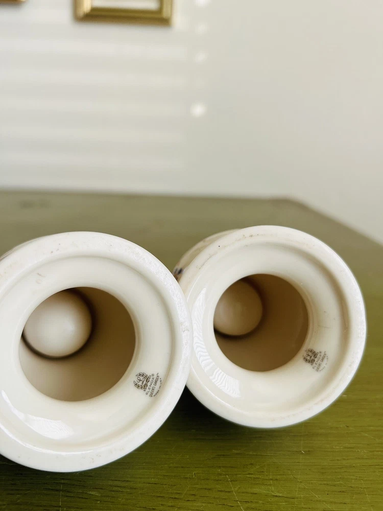The Lenox Queen's Garden Candlestick Holders are a pair of decorative collectibles made in the USA. Featuring a 24K golden trim, these candle holders add a touch of elegance to any space. The intricate design and high-quality craftsmanship make them a luxurious addition to any home decor. Perfect for creating a warm and inviting ambiance, these Lenox candlestick holders are a timeless and sophisticated choice for any collector or home decorator. (Joe)