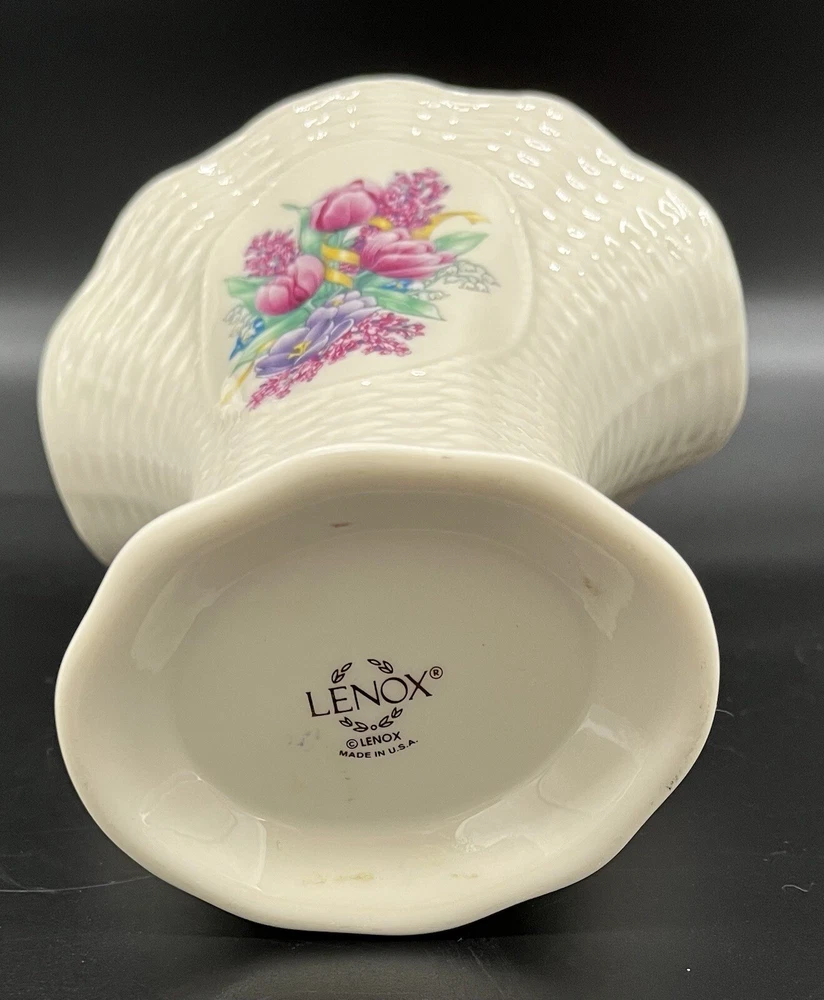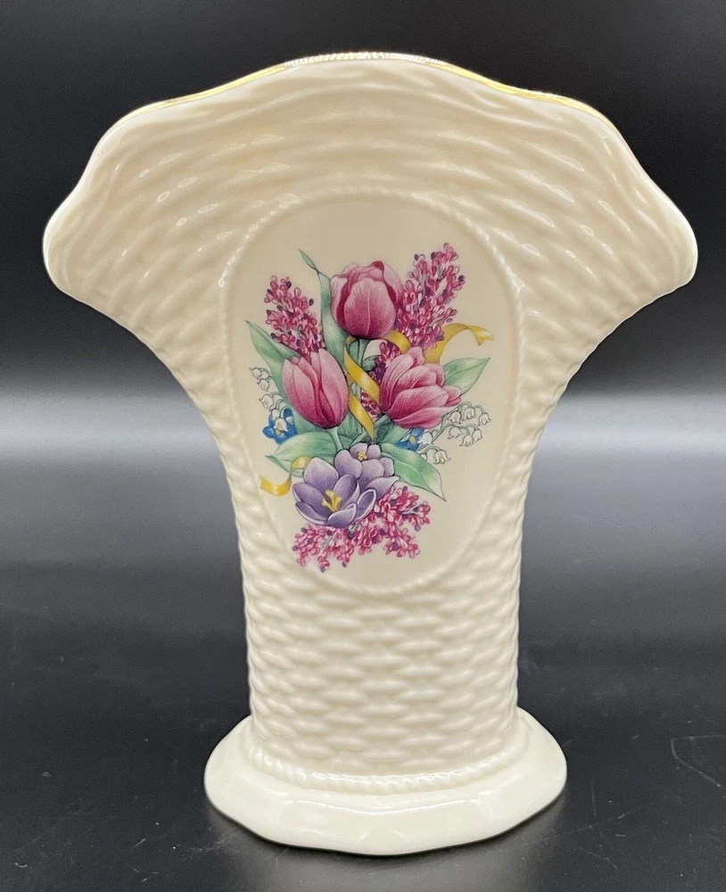 Lenox Floral Lilacs Tulips Flowers Basketweave Creamware Flower Vase Gold Trim. This is a beautiful vase! Perfect for everyday use to display fresh garden flowers. Do you see more than one item that you want? I can combine shipping. Once you have clicked the “Buy It Now” option, request an invoice BEFORE you pay for your items. I am always on the lookout for vintage and sought after items. Please check out my sellers page for other great products!