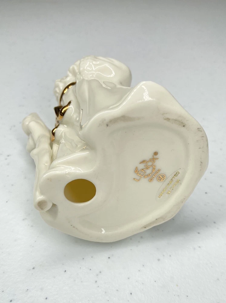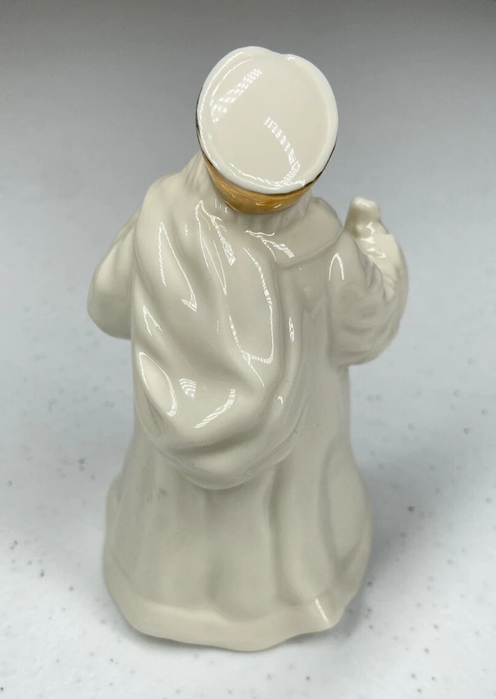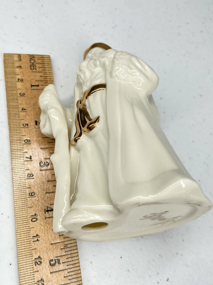Vintage Lenox Father Christmas with walking stick and gift sack figurine, white porcelain with gold accents. Approximately 4.75" tall. Excellent pre-owned condition.