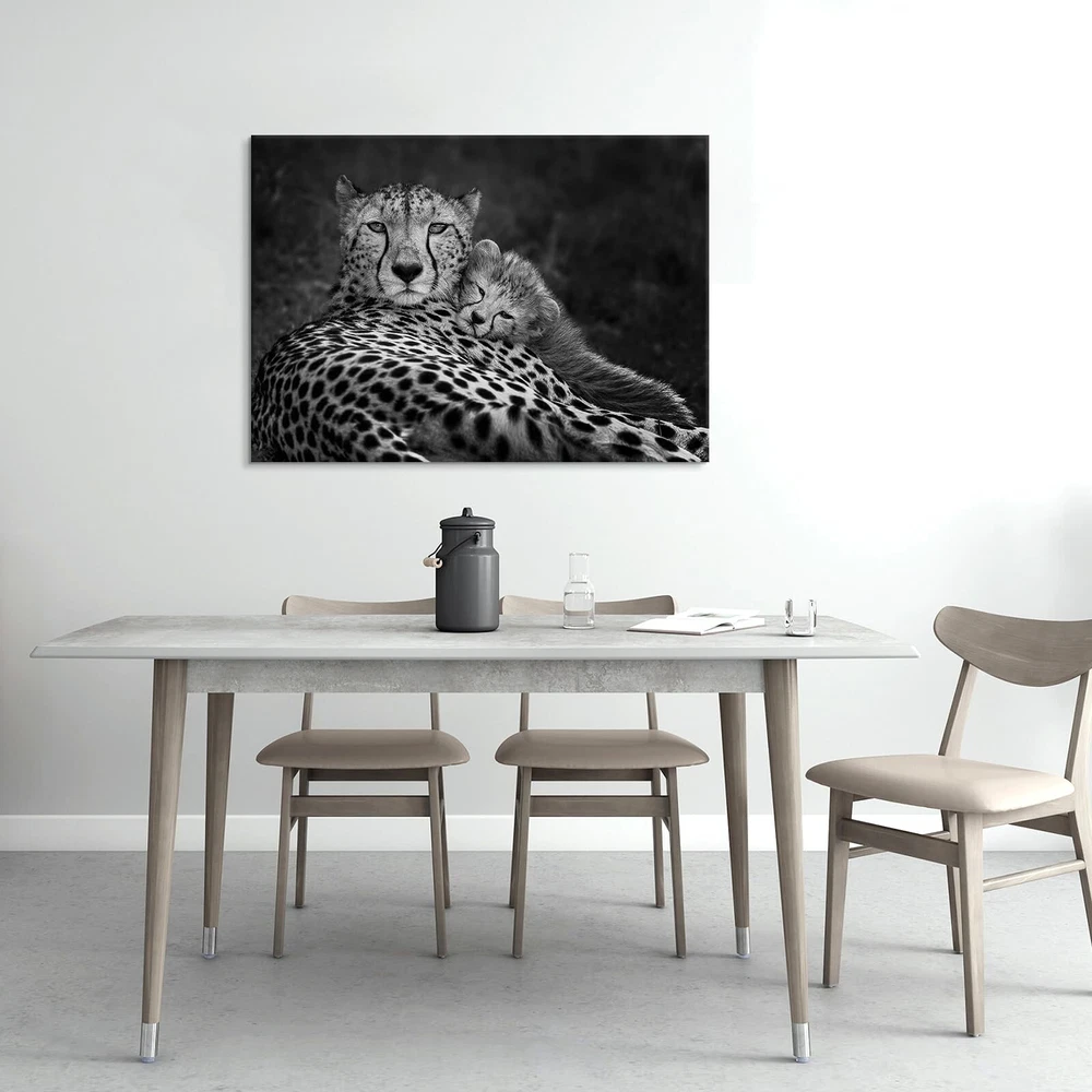 Leopard Canvas Wall Art Black and White Cheetah Painting Cheetah Family Mother with Cub Prints Picture Wildlife Artwork for Bathroom Bedroom Office Living Room Hallway Decor Product Details Color: Cheetah Family Size: 36x24 inch Brand: SEVEN WALL ARTS MPN: Does not apply UPC: Does not apply EAN: Does not apply Product Dimensions: 36 x 24 x 0.2 inches Item Weight: 2.35 pounds Date First Available: July 25, 2024 Leopard Canvas Wall Art Size:90cm wide x 60 cm high ( 36 x 24 Inch ).It brings a sense of serenity, elegance, and wildlife charm to any room in your home. Cheetah Family Pictures: High Definition Giclee modern canvas printing artwork, picture photos printed on high quality canvas. Vivid color create the feel of the original nature and masterpiece, bring a immersive experience to you.Eco-Ink print makes it safe for kids and pets. Wildlife Animal Framed Wall Art: A perfect Valentine's Day ,Christmas and New Year gifts for your relatives and friends, and good ideal for living room, bedroom, kitchen, office, Hotel, dining room, office, bar decor etc. Warm Tips: Leopard Canvas Wall Art display picture are only for illustration purpose, color may vary due to different brand of monitor, light, screen setting.If there is any issue, please don't hesitate to mail us. We will make you satisfied.