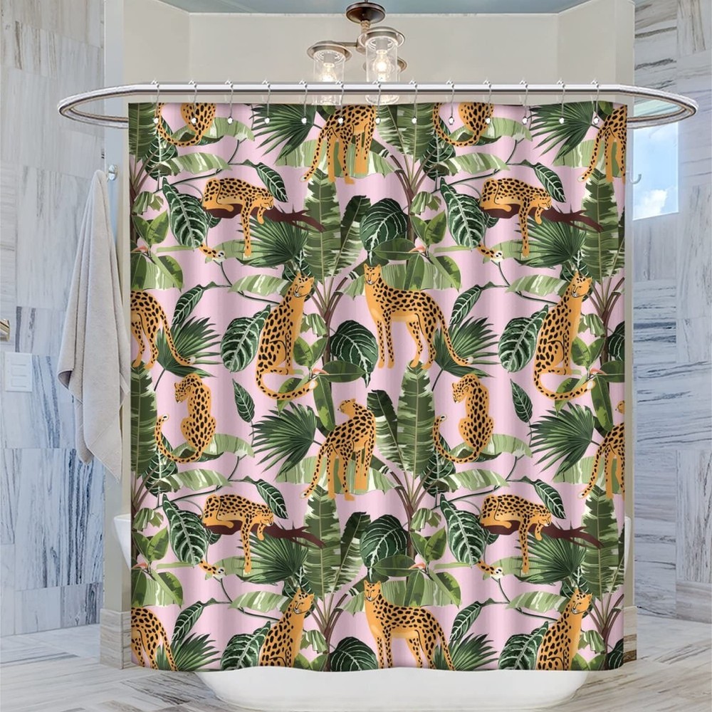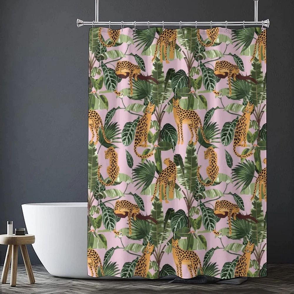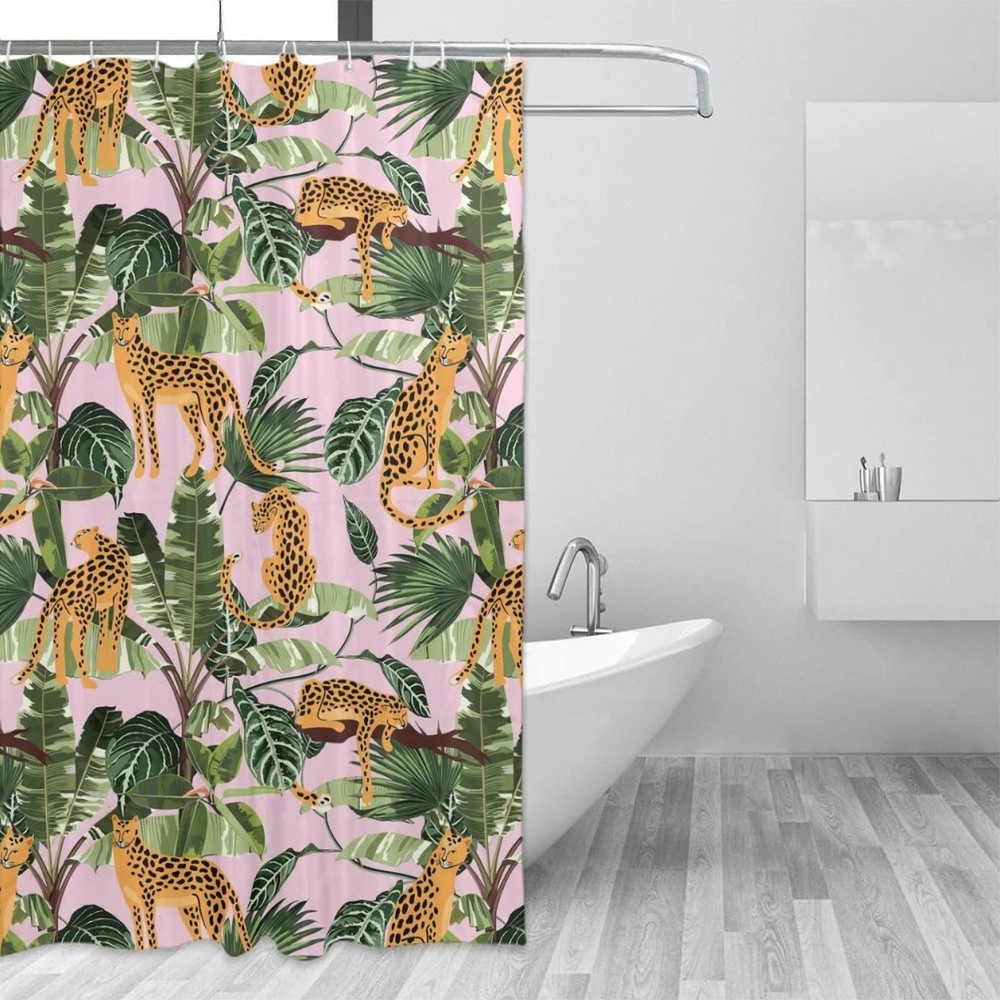 Welcome to . People always prefer some decor to highlight the visual aesthetic. The shower curtain is the best choice for bathroom. After work, we always choose to have a shower or bath in order to ride of the whole day’s fatigue. The fantasy pattern can create a separate bathroom space, and add more joy during bathing. What a convenient way to promote happiness! ★ 98% polyester fabric, machine washable. ★ Size: 66''W x 72''L; 72''W x 72''L; 72''W x 84''L. ★ Easy to install. Easy to hang. ★ Various style theme design, so that the bathroom is full of color and fun. Note 1. Please allow a little bit of size deviation due to manual measurement. 2. Due to differences in computer monitors, please allow a little bit of color difference between the picture and the object. 【List】Products include a Leopard Palm Leaves shower curtain 72x72inch(183x183cm) and plastic hooks, Plastic rings, excluding shower curtain rod. 【SOFT & WATERPROOF】: The lining of this shower curtain is made of polyester fabric with waterproof technology, which makes it not only waterproof but also has a soft feel 【Modern Design】: Abstract Boho Wildlife Tropical Jungle Green Leaf Big Cat Decor shower curtains for bathroom. Leopard Palm Leaves Shower Curtain. Pretty design is easy to fit into most of home style. This shower curtain is perfect for decoration. 【HD Printing】This shower curtain HD digital printing technology, the pattern is exquisite, not easy to fade, the exquisite design of the product can keep you in a happy and relaxed mood while bathing. 【Easy Care】: This polyester shower liner dries quickly, great for use in moisture-rich bathroom environments, machine washable for keeping it fresh and reusable, 72x72inch(183x183cm) standard size fits for most shower or bathtub