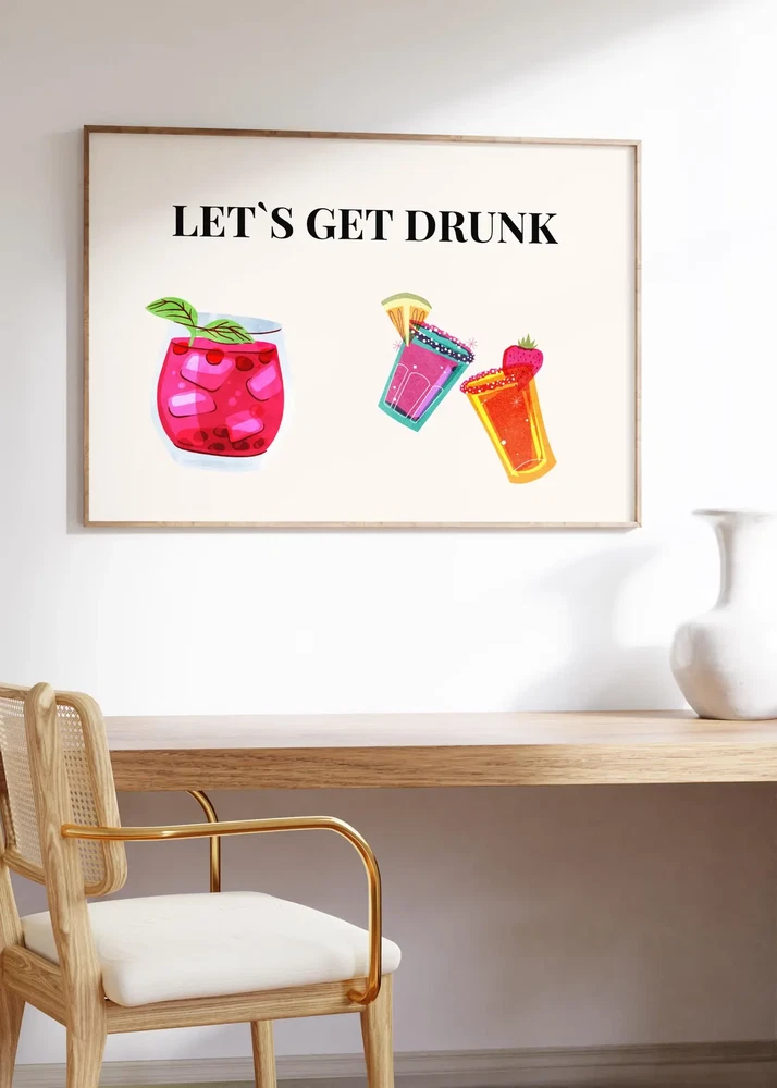Let’s Get Drunk Sign with Cocktail Paint Poster Premium Quality Choose your Size