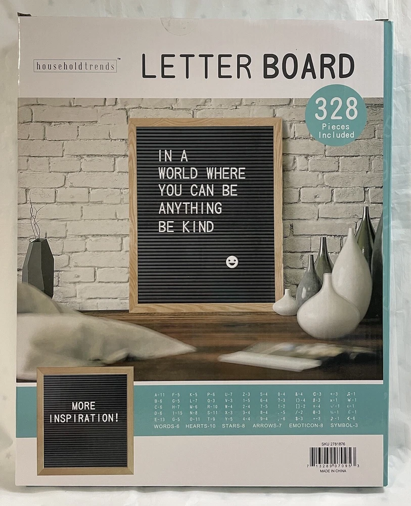 Letter Board Display 11"x14" contains 328 pieces (NEW). P.S. Please buy wisely and, refer to the pictures to see details of the product. If you have any questions about the product just let me know ☺️.