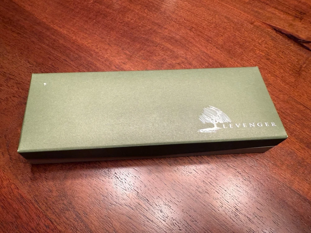 Very nice Levenger rolling ball pen. Twist off cap with gold trim. Been in storage for a number of years but never used.