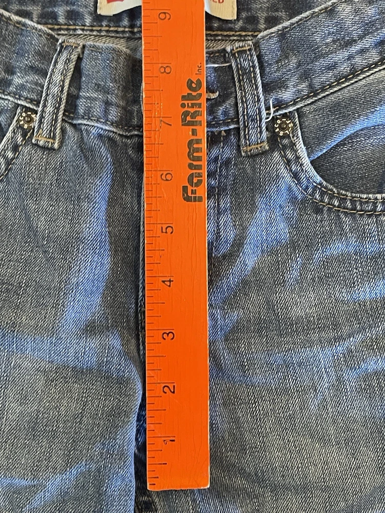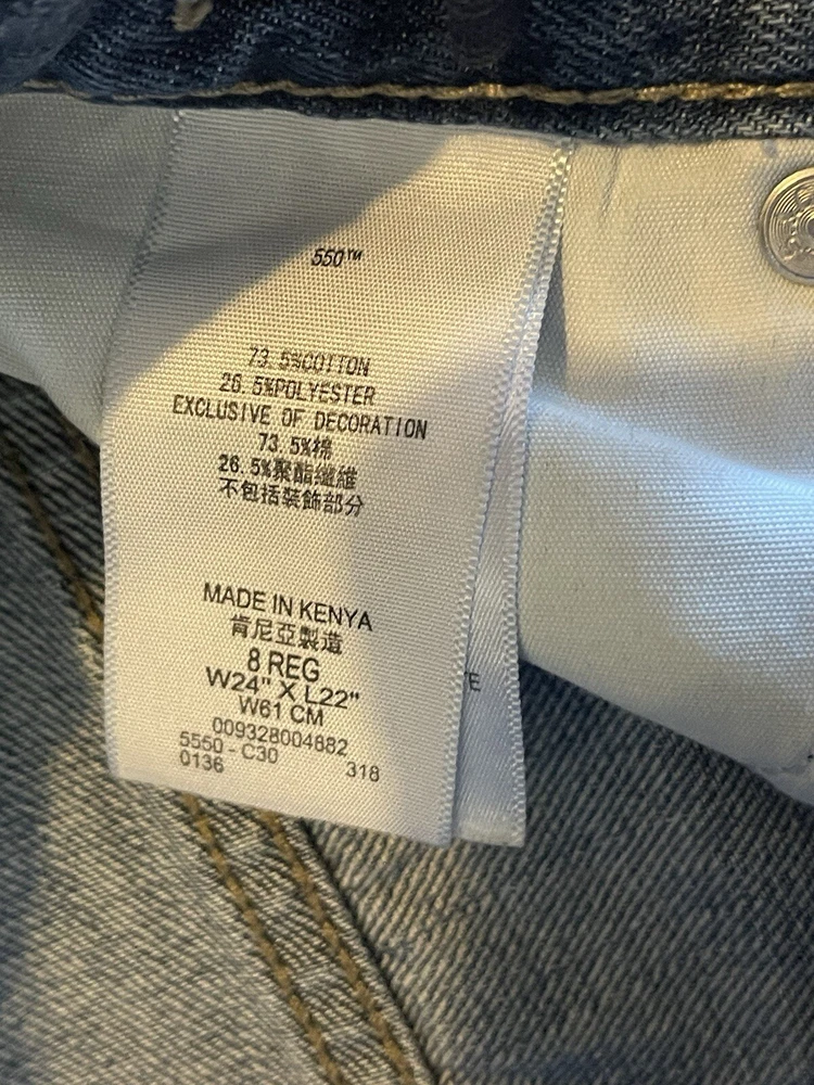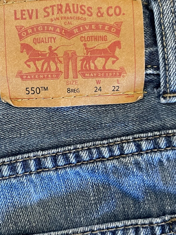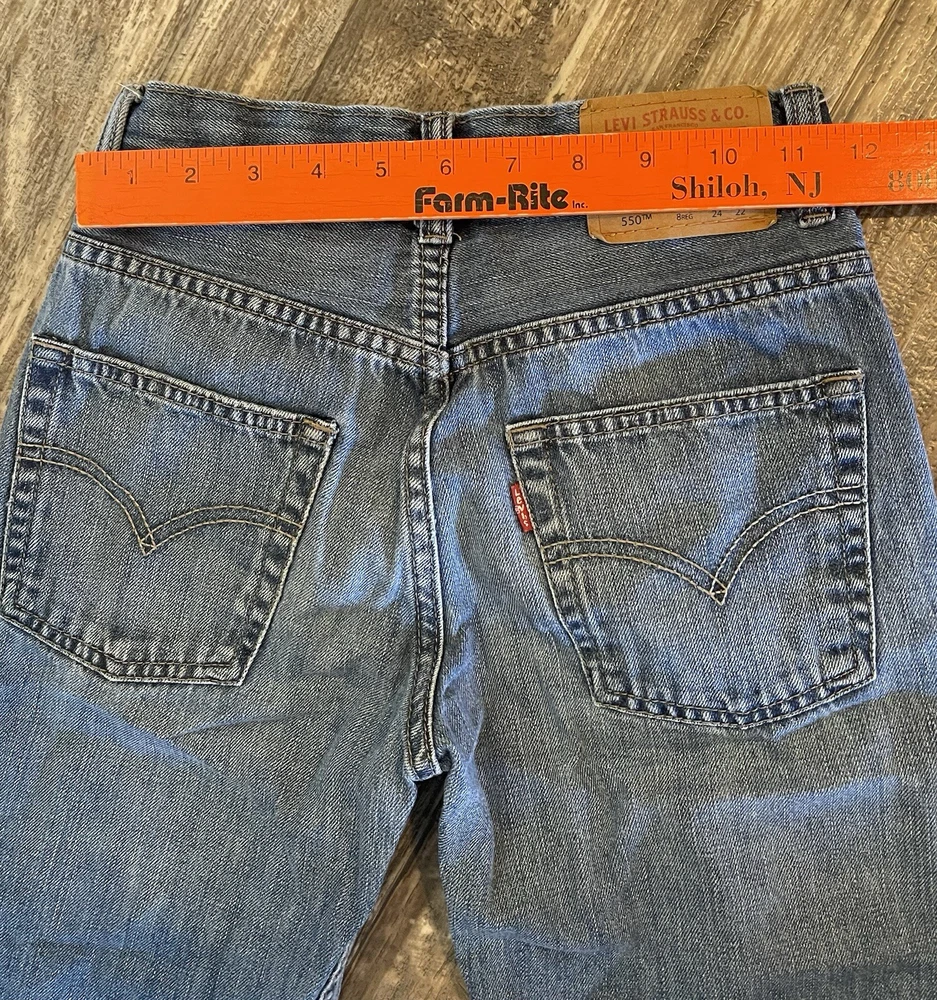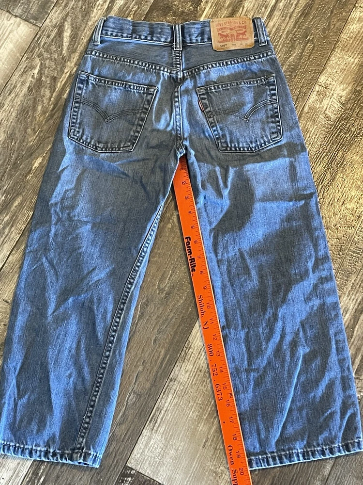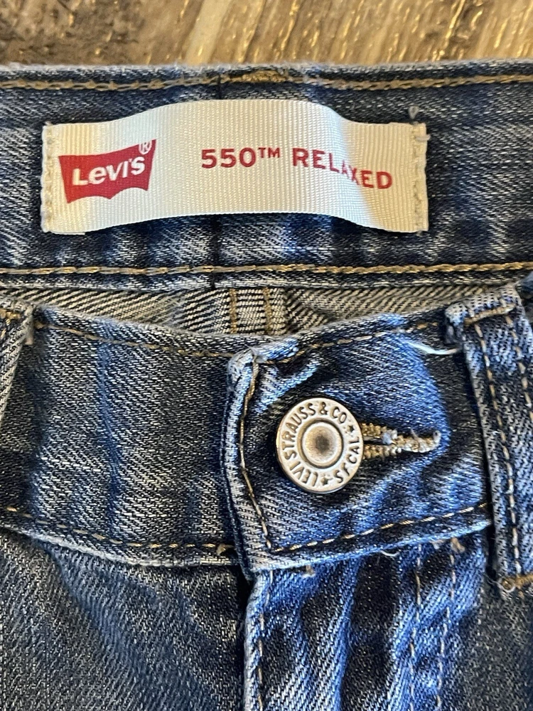 Elevate your child's wardrobe with these pre-owned Levi's 550 jeans in a stylish blue color. The relaxed fit and slimming features make them perfect for any occasion. The zip closure and denim fabric wash add to the durability of these cotton jeans. These jeans are suitable for boys with a waist size of 24 inches and a regular size type. The straight leg style and 22-inch inseam make them a versatile addition to any outfit. These Levi's 550 jeans are a must-have for any young fashionista and are sure to make a statement.