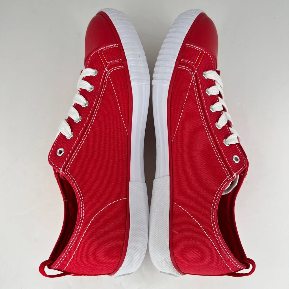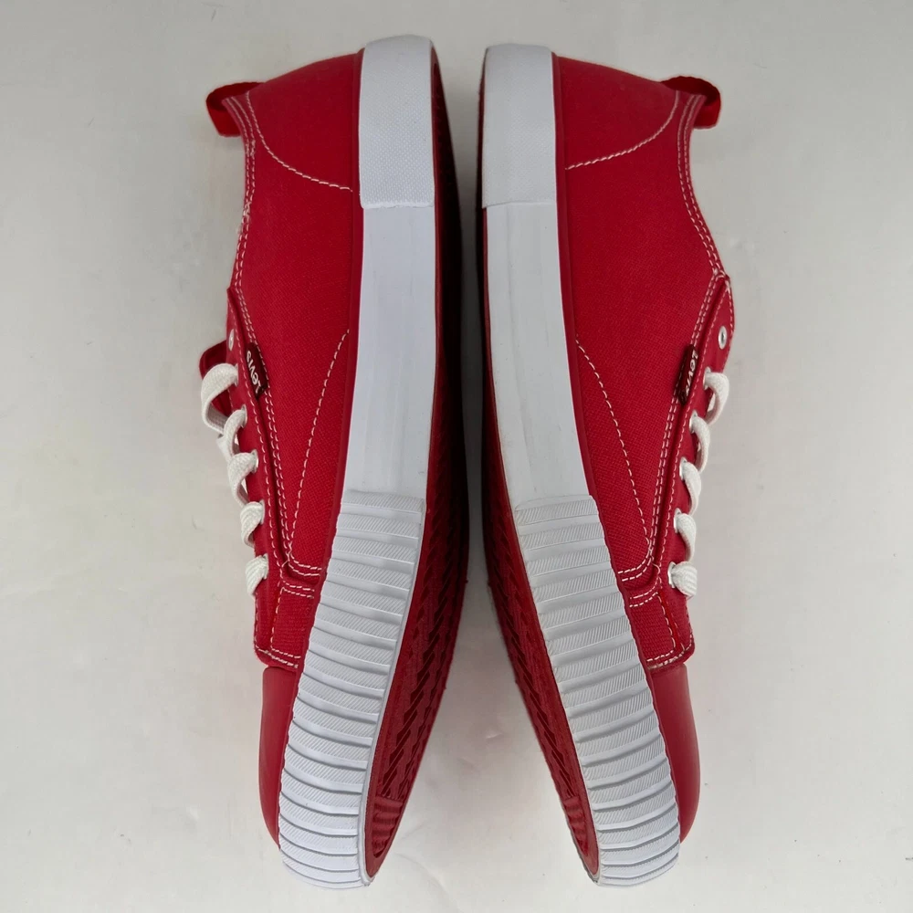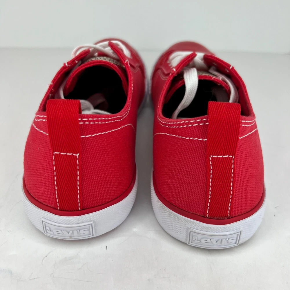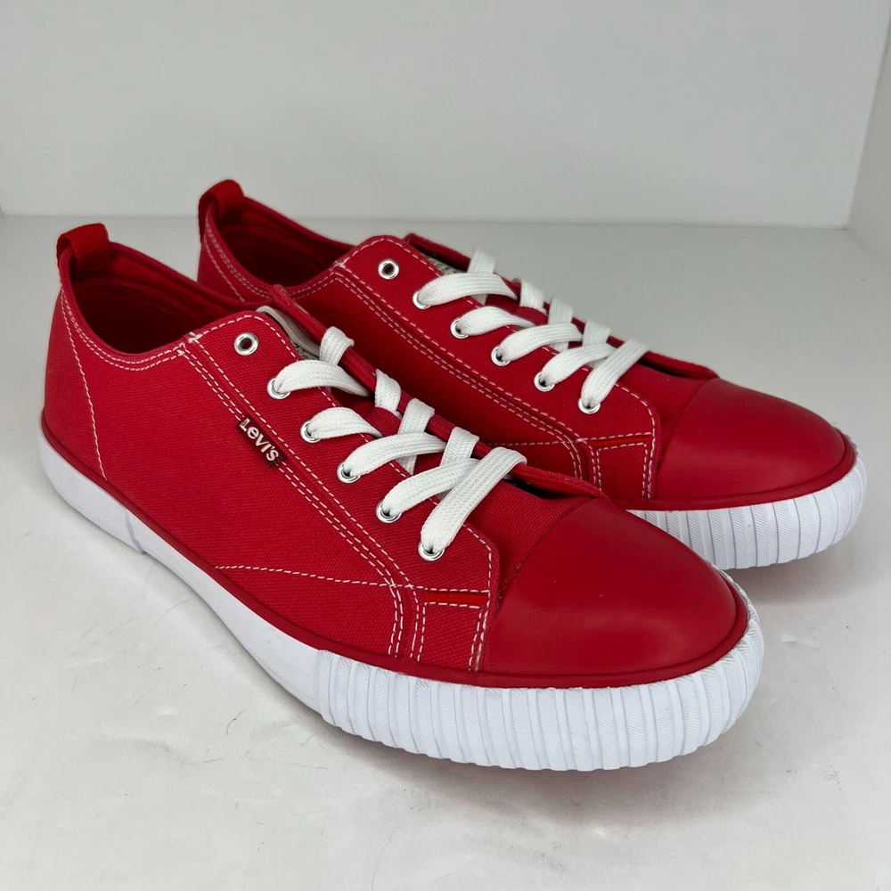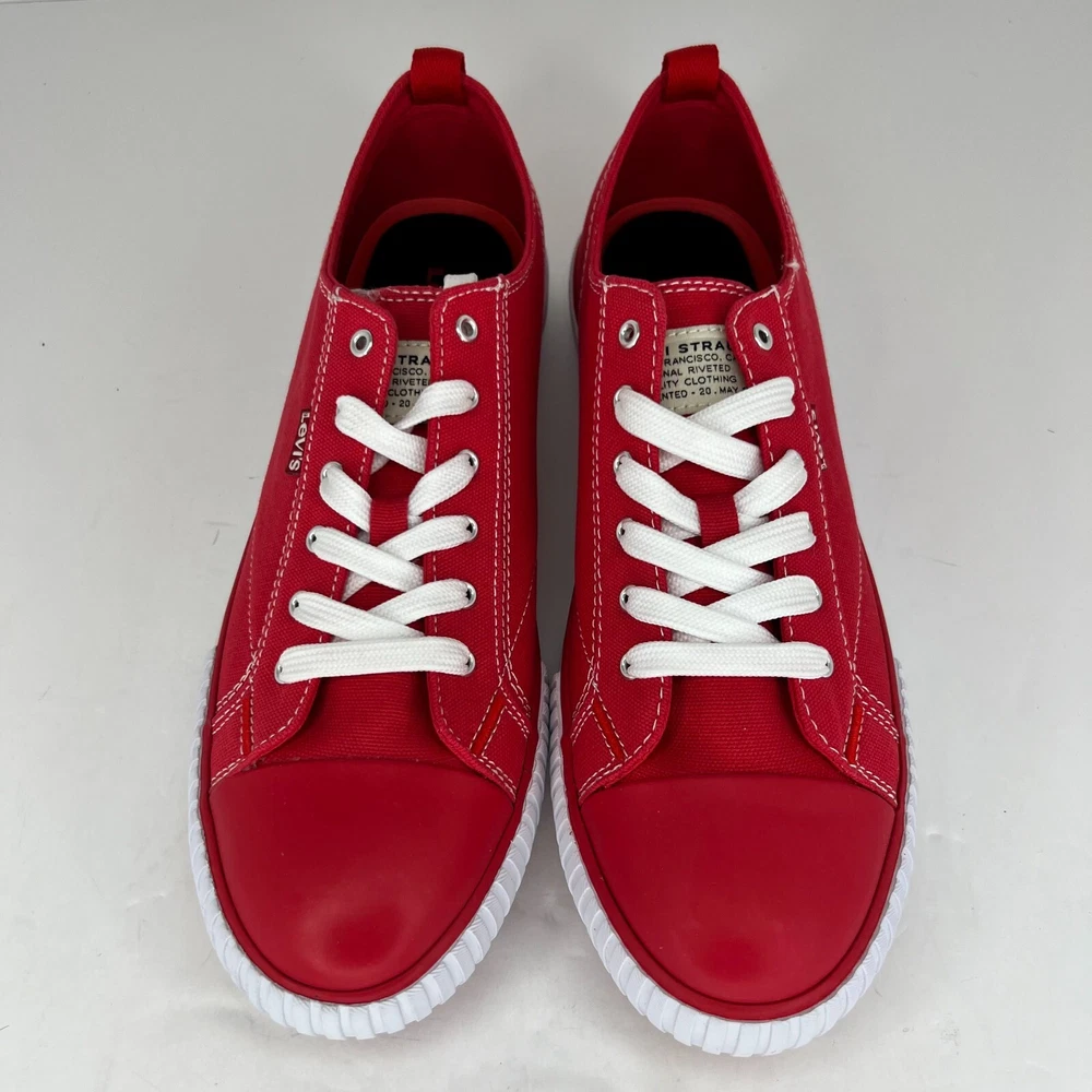 Elevate your casual style with these Levi's women's sneakers in a vibrant red color. Featuring a low top shoe shaft style, round toe shape, and lace-up closure, these sneakers provide a comfortable fit for any activity. The solid pattern and canvas lining material add a touch of sophistication, while the flat heel style makes them perfect for school or driving. Made with high-quality fabric and foam insole material, these sneakers are durable and long-lasting. The rubber outsole material ensures traction and stability, making them suitable for any season - summer, fall, or spring. These sneakers are a must-have for any fashion-conscious woman, and they are available in UK shoe size 7.5, US shoe size 10, and EU shoe size 42. 100% CUSTOMER SATISFACTION IS OUR GOAL! Our items are always carefully examined for condition, measured if necessary, and photographed in a climate controlled and smoke-free environment. We make every attempt to accurately describe and clearly picture the items we have for sale. Please, ALWAYS view all of the photos. We value your business and our goal is your complete satisfaction. FAST SHIPPING All items are packaged with care and shipped out the same or next business day via USPS, FEDEX, or UPS with tracking numbers so you are always informed. RETURNS We offer a 30-day return policy. All items must be unused and unopened in the condition in which they were received, with original packaging, and all accessories included for return. REVIEWS - CUSTOMER SATISFACTION - COMMUNICATION We aim to make you happy. After you receive your shipment, please leave a positive review . If you have concerns or questions about your order, please contact us so we can resolve the issue. We will do our best to make you satisfied. THANK YOU FOR YOUR BUSINESS!