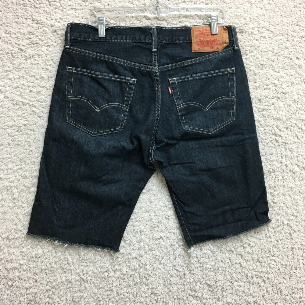 Levis 501 Shorts 34 Mens Blue Denim Cut Off Jorts Button Fly Bermuda Dark Wash