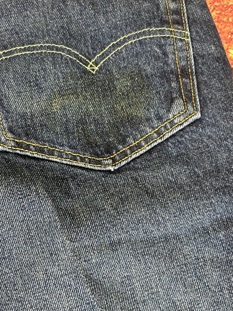 Levi's 502 Tapered Fit Denim Black Jean Shorts for men in size 33 with a distressed dark wash. These vintage-inspired shorts have a regular fit, high rise, and zip closure. Made from a cotton blend fabric, they feature a classic 5-pocket design with belt loops. The shorts have a 12-inch inseam and are designed with a Western, USA, and Rodeo theme.