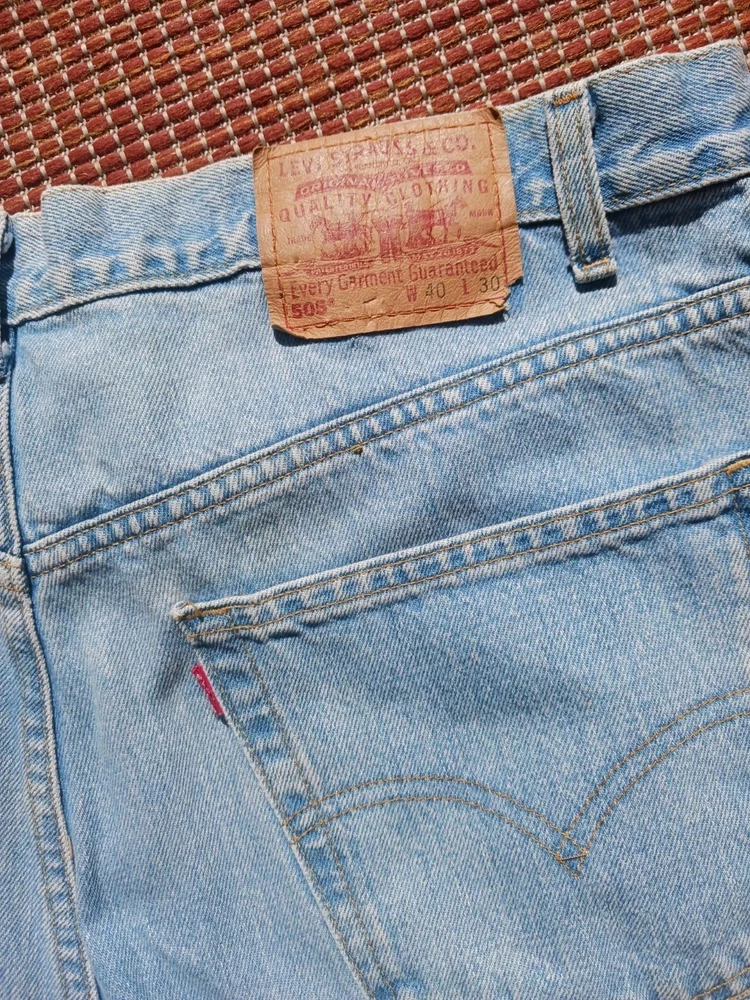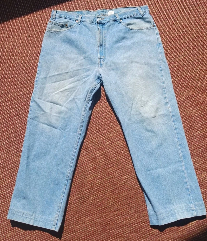 Pre-owned Levi's 505 mens regular straight leg jeans label size 40×30... they are hemmed to 25 inch inseam but a seem ripper could be used to get original length of 30 In great condition a small distress on one pants leg. Washed per Ebay's standards Thanks for looking.