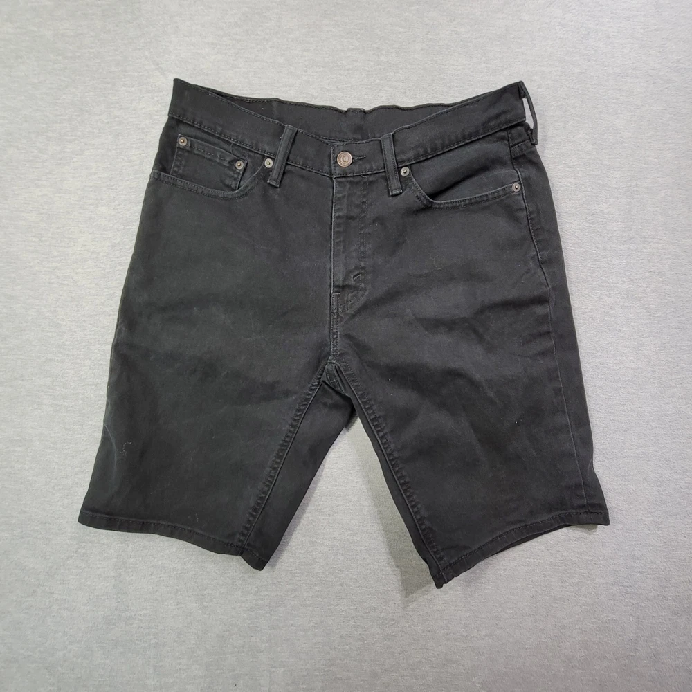 Crafted for comfort and style, these Levi's 541 denim shorts are a go-to for the modern man. The size 32 waist with a mid-rise fit offers a classic look that's both flattering and versatile. The Bermuda style cut paired with a solid black color makes them an easy match for a variety of occasions. The blend of cotton and spandex ensures a stretch fit that moves with you, while the 5-pocket design adds practicality to this sleek garment. With an 11-inch inseam and a flat front, these shorts are designed to cater to everyday wear without compromising on style.