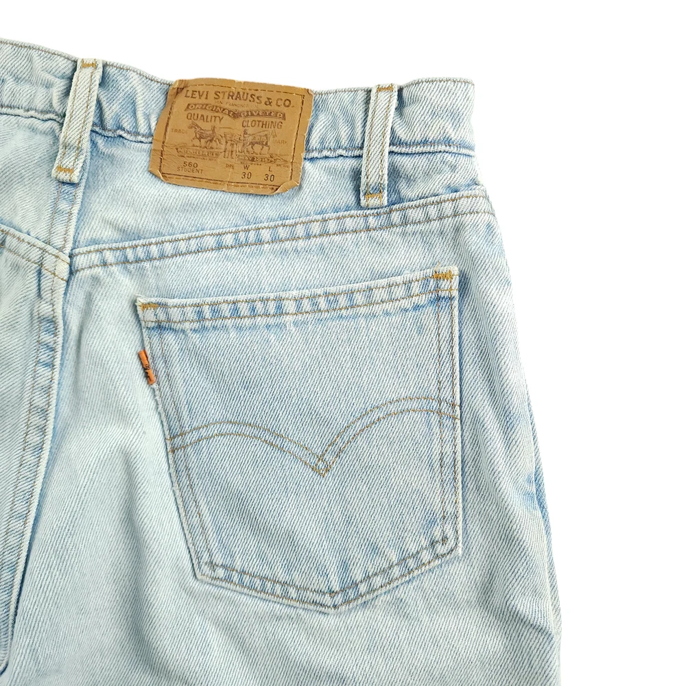 Levi's 560 Cutoff Jorts 30 Unisex Vtg 90s Student Fit Orange Tab USA Light Wash Made in USA These vintage Levis Orange tab jorts are going to sit at or slightly below your waist. There is some minor discoloration/yellowing around the frayed/raw pant legs. Get them before they are gone!! Product Details Waist 29 inches Inseam 9.5 inches Length 20 inches Rise 10.5 inches Leg 22 inches Thigh/Hip 39 inches Material 100% cotton Imported USA I ship the same day if the order is received by 1 PM EST or ship the next day utilizing recycled, sustainable packaging and materials. I do not ship to Belarus, Russia, Mexico, Vietnam, and Germany due to national shipping requirements/restrictions. I offer automatic combined shipping and also I offer bundle and shipping discounts for 2 or more items purchased in my store. Buyer is responsible for the payment of all import fees if international sale. I accept returns if permitted by the platform that the item was purchased on within 30 days of delivery date. Items must be returned in the condition received. International returns are at the buyer's expense. All clothing items have been steam cleaned and/or washed. If you have questions, I will respond as quickly as I can.