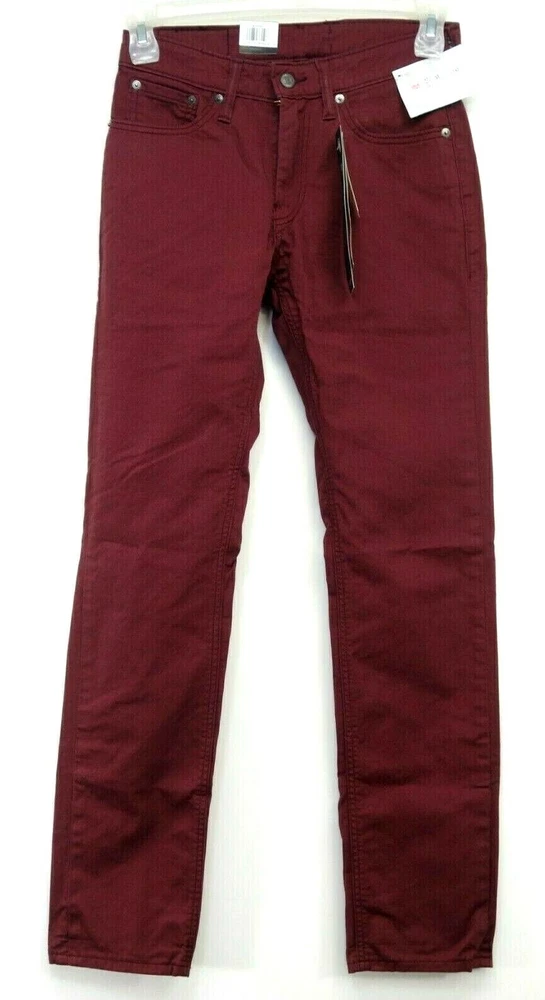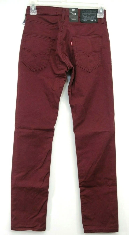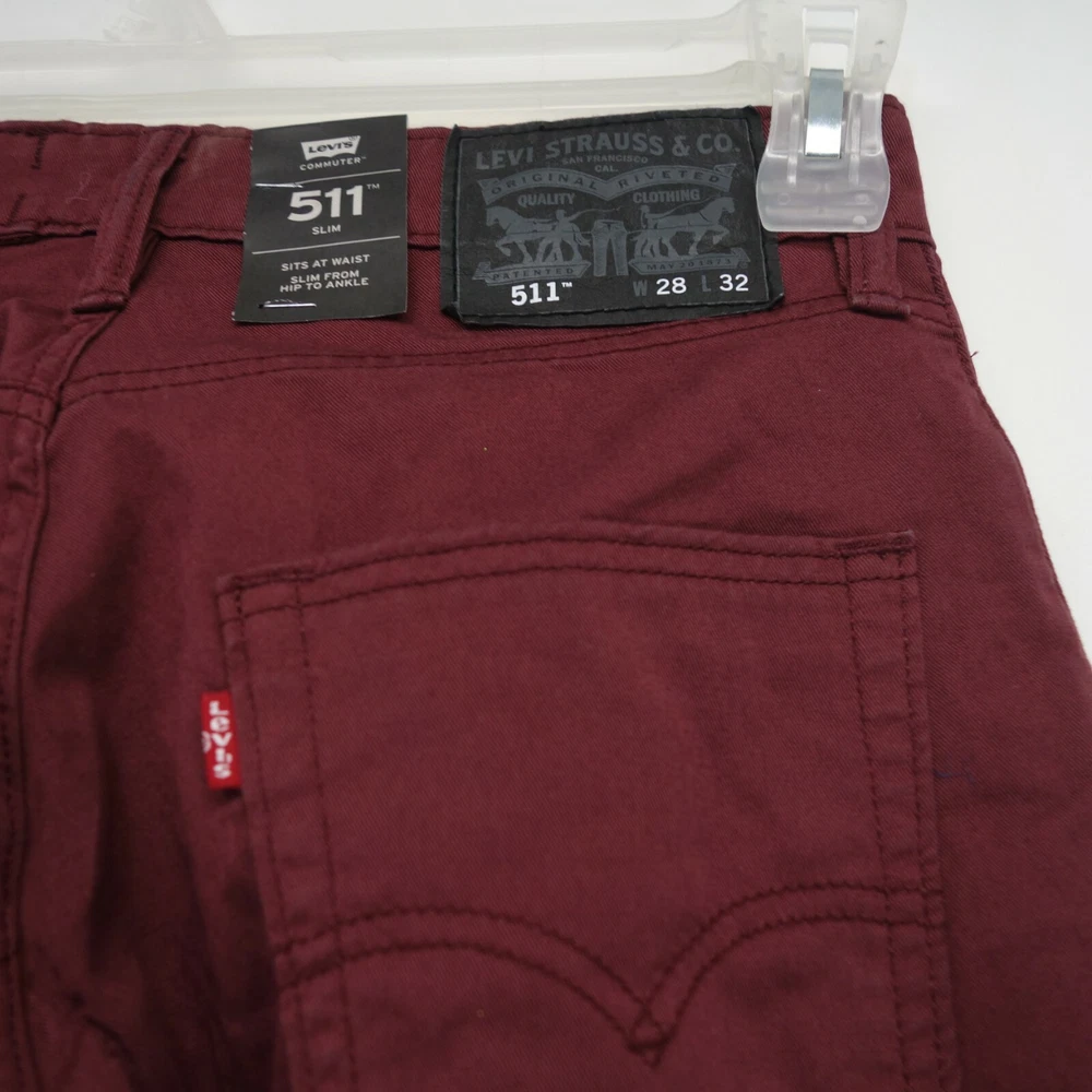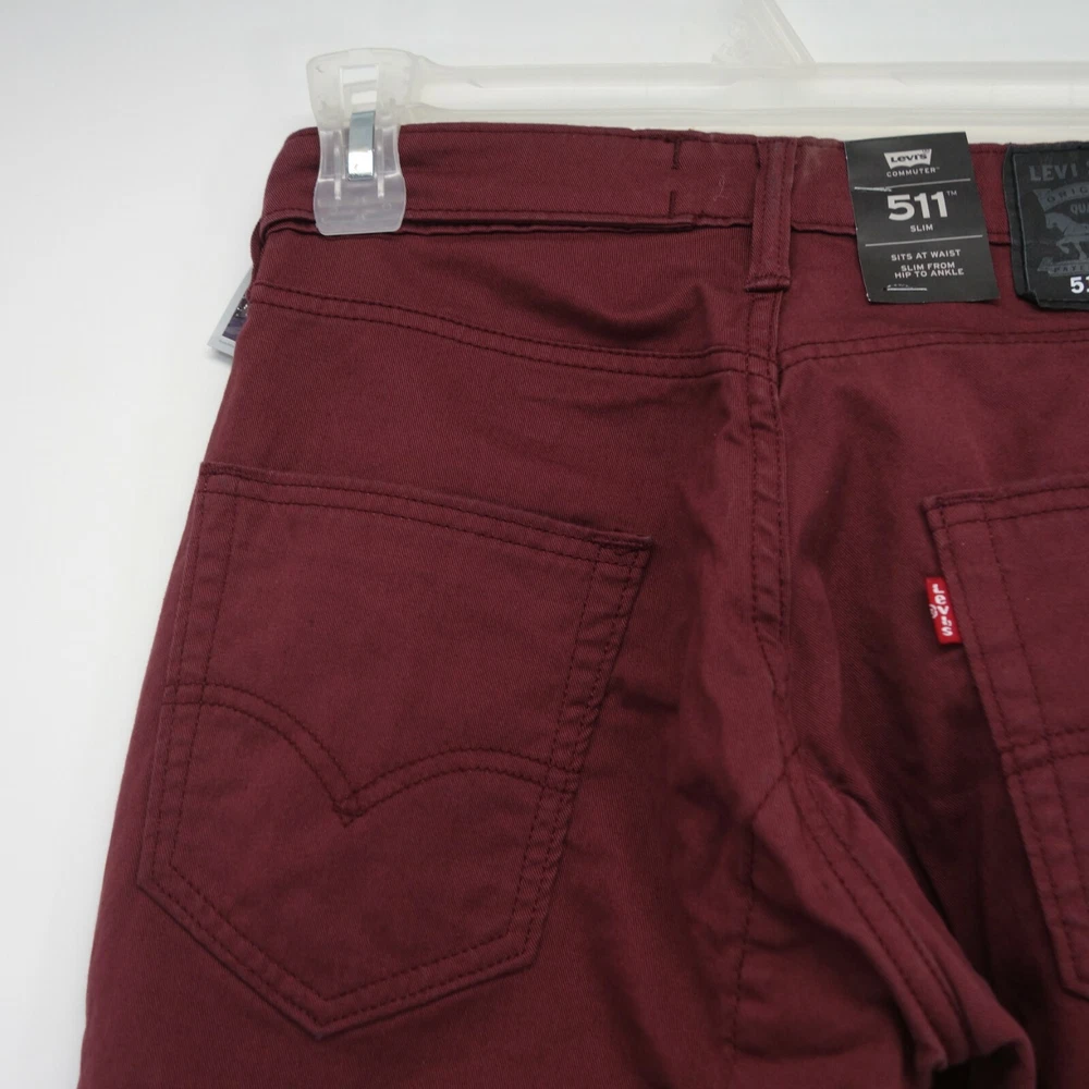 New Levi's Mens Size: 28 x 32 511 0104 Burgundy Red Commuter Pro Slim Fit Stretch Denim Jeans The Levi's Commuter collection delivers stylish, performance-driven products for the modern urban cyclist. These slim fit jeans feature strong, stretch fabric, water repellency, reflective details, u-lock holder, and a higher back rise for coverage while riding. Pair these off best with a fitted tee or button down shirt with some Timbs or boots. Part of the BLK ICE Collection 98% Cotton 2% Elastane Slim fit Sits below waist Slightly tapered leg Zip and snap closure Dual pockets in front and rear Made in Bangladesh Retails for $80.00, get it here for a fraction of the price First quality, NO KNOCKOFFS Measurements: Front Rise: 10" Leg Opening: 6.5" Waist Flat: 28" Country of Origin: Bangladesh Terms Of Sale We ship Worldwide, 5 days a week. A purchase on Friday after 3pm, sometimes will not ship till Monday. Shipping In the continental USA, items usually arrive within 4 business days, please allow more time for international shipping. Items may be combined when paid together on the same invoice. Additional shipping costs are as follows: $3.45 for each additional item IN THE USA. Outside of the USA – $9.99 to $35.00 depending on the item, please message us for rates ahead before purchasing International Shipping: Import duties, taxes and charges are not included in the item price or shipping charges. These charges are the buyer's responsibility. Please check with your country's customs office to determine what these additional costs will be prior to bid or purchase. Guarantee: Please leave us 5 stars, if you feel we have fallen short, do not hesitate to message us so we may have a chance to make it right.