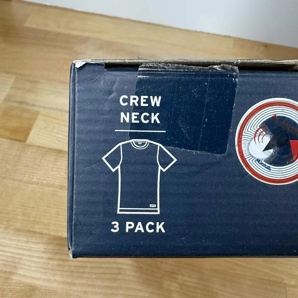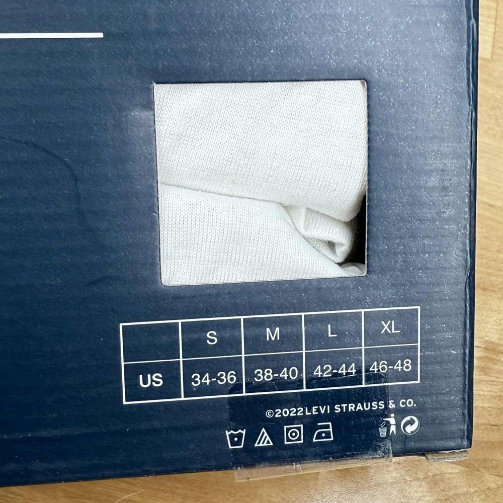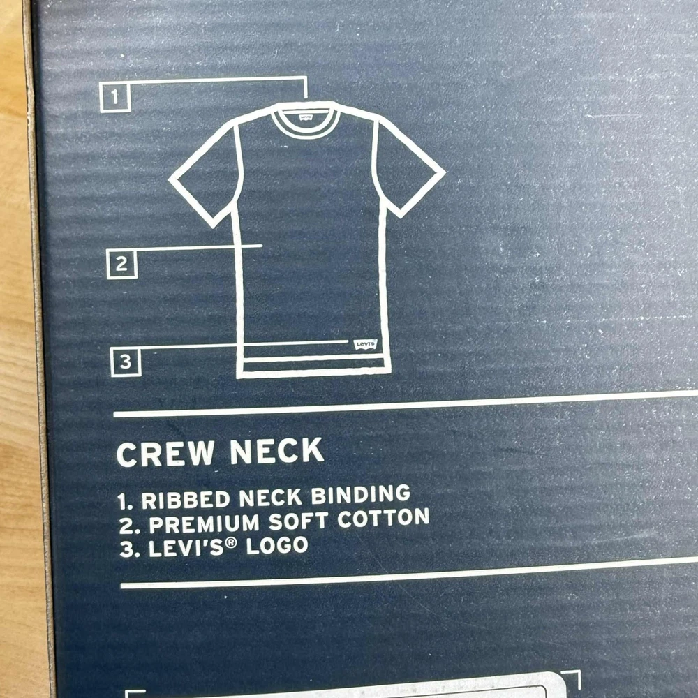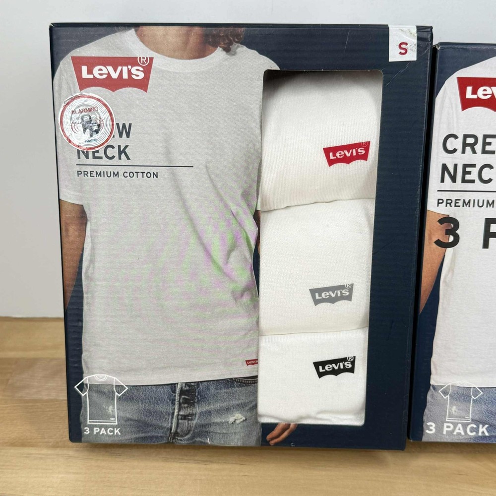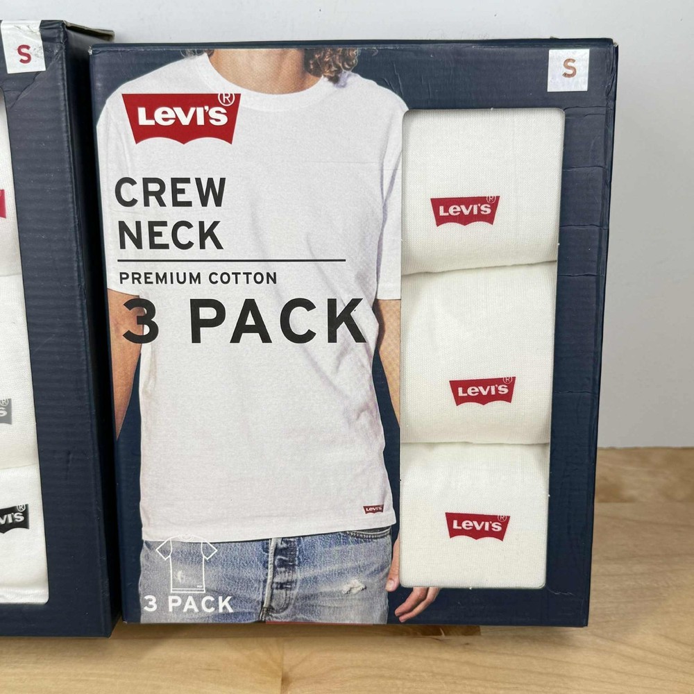 This product is a 6-pack (2 packs of 3ct) of Levi's men's crew neck T-shirts in size small. Made with premium cotton, these white shirts feature a solid pattern, short sleeves, and a regular fit. Perfect for casual occasions, they are machine washable and have the Levi's logo as an accent. Suitable for all seasons, these T-shirts are a versatile and stylish addition to any man's wardrobe.
