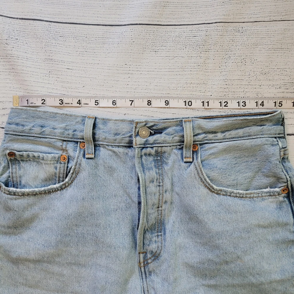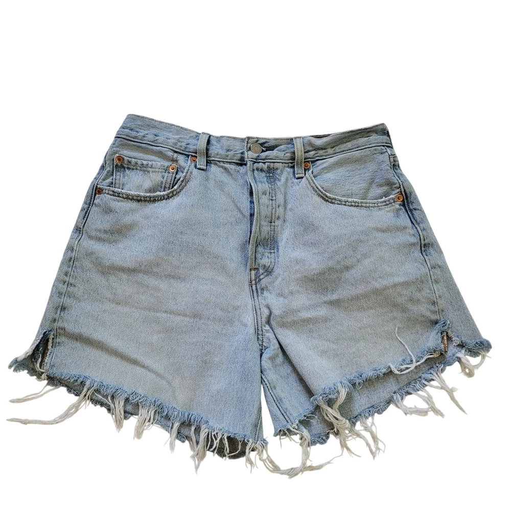 Levi's Size 30 High Waisted Button Fly Light Wash Cut Off Jeans Summer Beach Button fly closure 5 pocket design Belt loops Fraying cut off hemline Longer length with classic Levi's look -Materials: 100% cotton -Excellent, pre-owned condition. No visible stains, flaws or tears. No to minimal signs of previous wear. Measurements included in photos - please inquire if more are needed. All offers considered - make one today! Approximate Measurements: Waist: 30" Rise: 10" Inseam: 4.5" Style Profile: edgy distressed punk rocker concert essentials capsule wardrobe basics