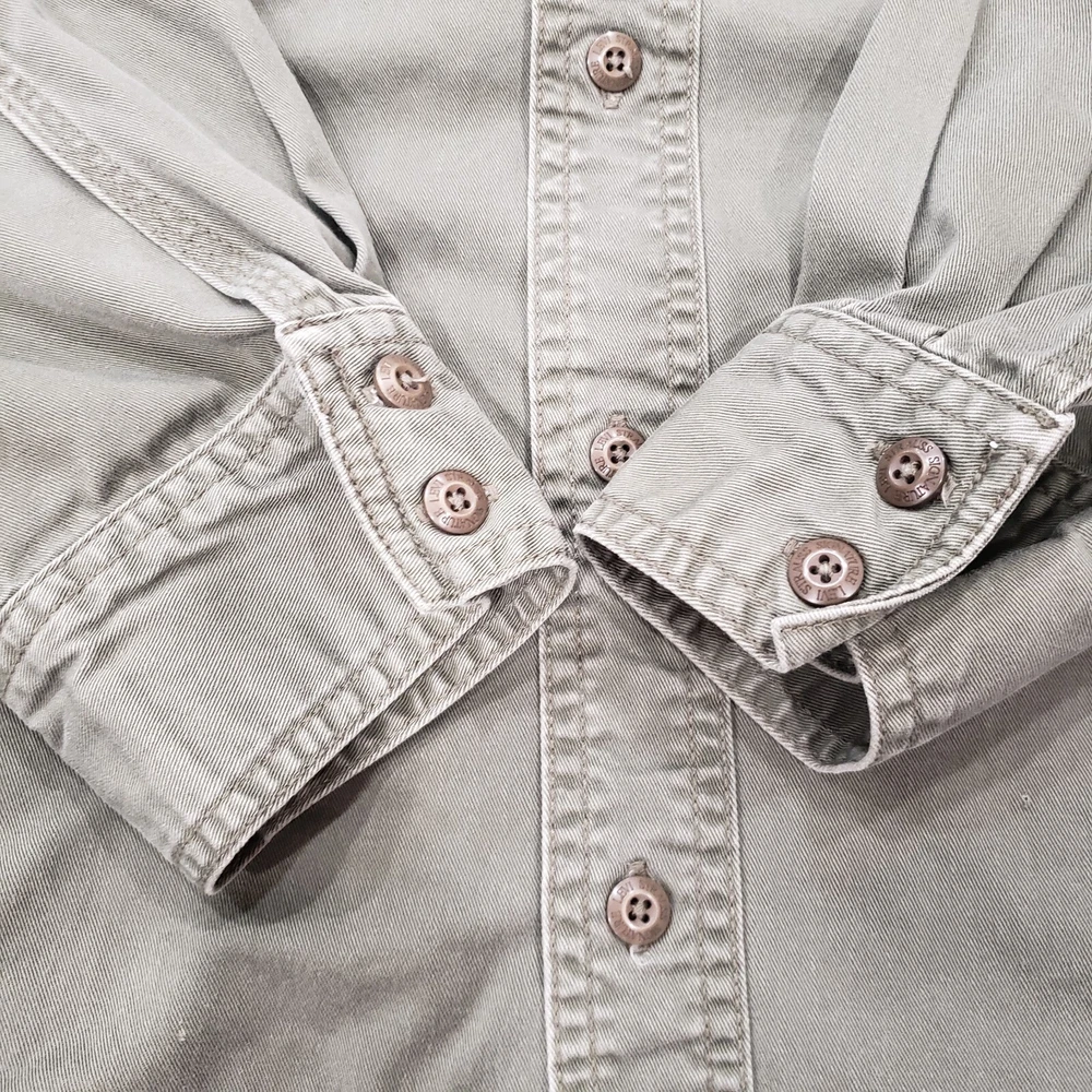 Please verify measurements. This states a XL, but I think it has shrunk. It is made of 100% cotton, so it probably has shrunk at least a little. Other than this long sleeve is in good condition. Pleas see pictures for measurements and condition.
