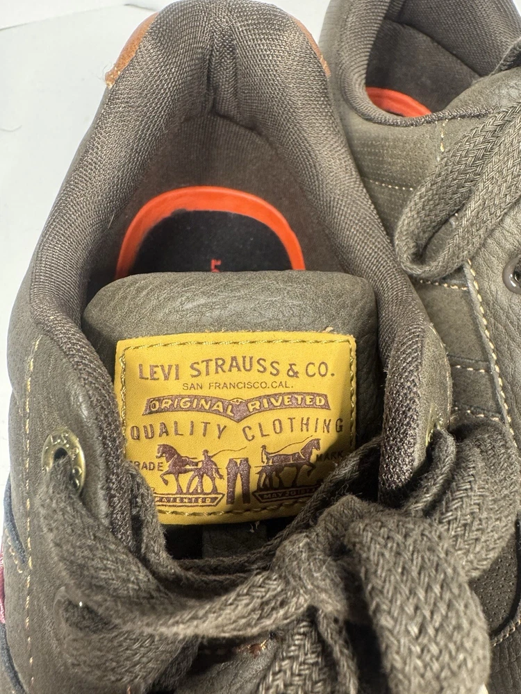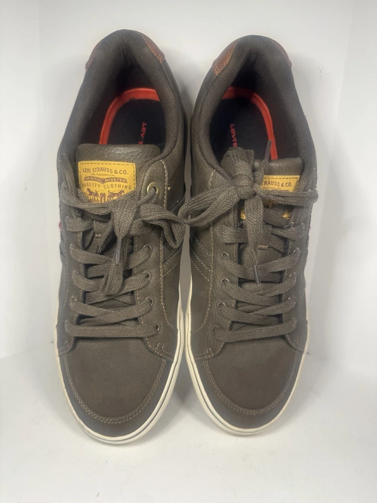Model: Levis Strauss Style: Sneaker Color: Brown US Shoe Size: 12 Department: Men Brand: Levis Type: Casual Outsole Material: Faux Leather Upper Material: Leather