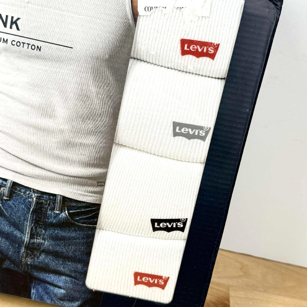 This Levi's Tank Top Shirt is a versatile and comfortable addition to any man's wardrobe. Made from a blend of polyester and cotton, this sleeveless shirt features a crew neckline and is machine washable for easy care. The solid white color and Levi's logo accents add a touch of style, while the regular fit and breathable fabric make it perfect for all seasons. Whether you're hitting the gym or grabbing drinks with friends, this tank top has you covered with its lightweight and ribbed design.