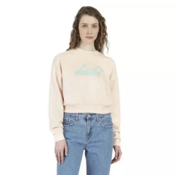 Levi's® Women Small Cropped Graphic Logo Sweatshirt Script Peach Puree New with Tags $54.50 msrp Material: 60% Cotton 40% Polyester Approximate Measurements: Pit to Pit: 22.5’’ Length: 19’’ New with Tags. Next businesses day shipping!