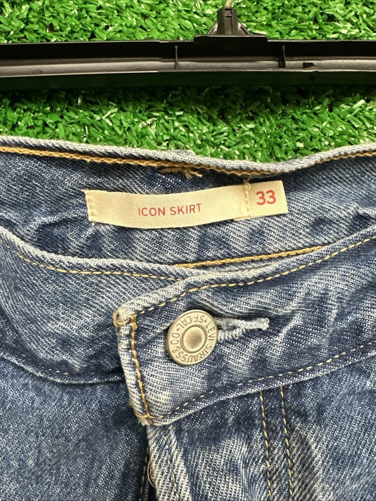 This is a Levi's women's denim skirt in a blue color, with a regular fit and a short length. It features an iconic style, made of cotton denim fabric. The skirt is designed for women and is in size 33. SKU: k17 Listed by:AS CONDITION:NWT Size/shade: blue / size 33 Date:01/17/25 The item is inspected to the best of our abilities and appears to be in good condition.