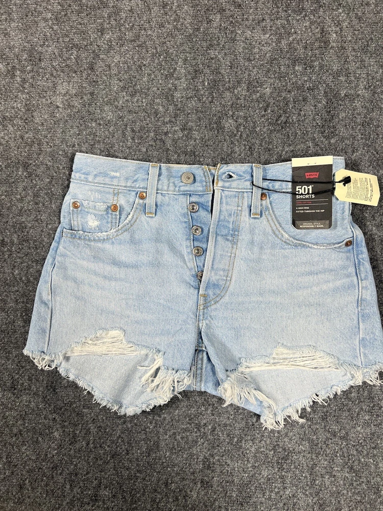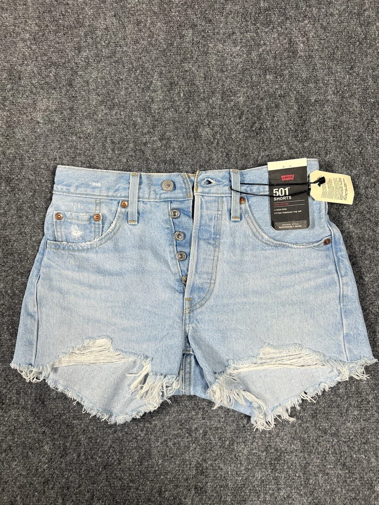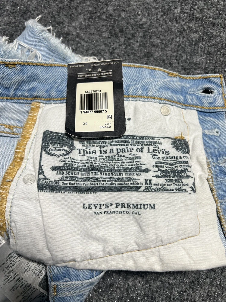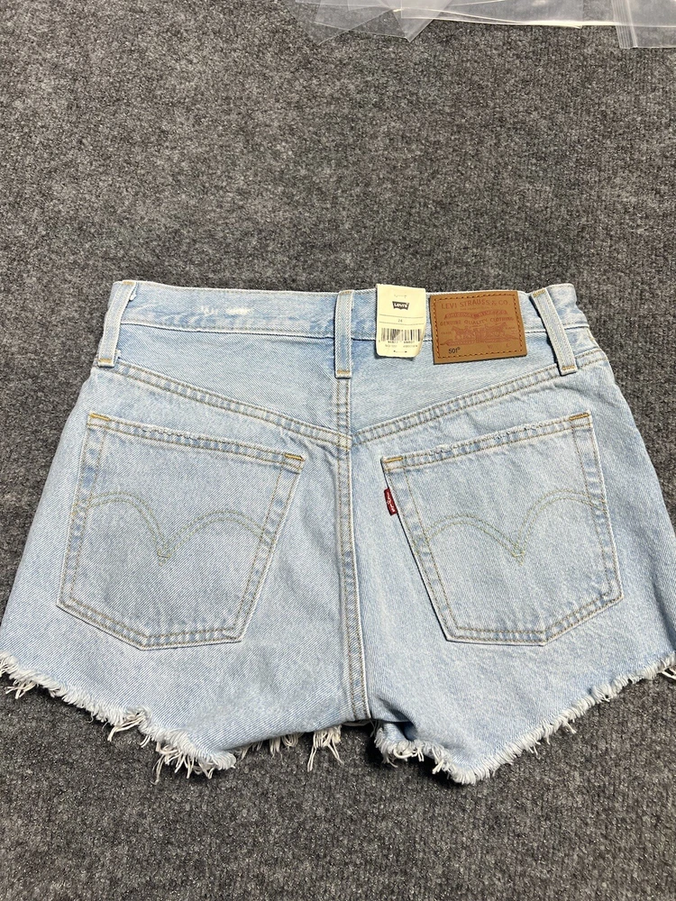 Elevate your summer wardrobe with these stylish Levi's Women's Blue Denim Cut-Off Shorts. Perfect for any casual day out, these shorts are made from high-quality denim fabric that offers comfort and durability. The shorts are designed with a button closure and a classic Levi's logo patch at the back for a chic look. The shorts come in a light wash color, with a solid pattern that adds to their appeal. They are available in size 24 and have a regular fit. The Levi's Women's Blue Denim Cut-Off Shorts are perfect for any fashion-forward woman who wants to add a touch of style to her summer wardrobe.