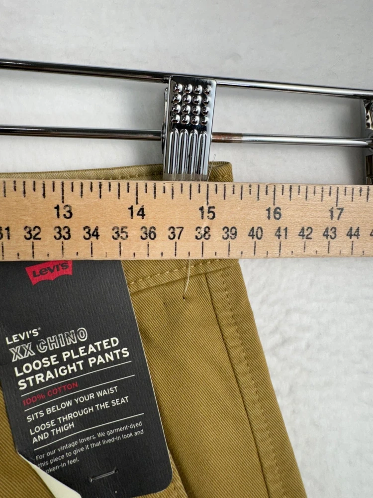 New with Tag About this Style We took our XX Chino Loose Straight and gave it a pleated upgrade. These XX Chino Loose Straight Pleated Pants have more give than our Slim Taper but look just as clean and contemporary. A modern take on the classic chino Cut with a loose fit and straight leg Features a hidden zip-secure pouch in the right pocket With a pleated design For our vintage lovers: We garment-dyed this piece to give it that lived-in look and broken-in feel Flat lay: waist 15.2" Rise 12" Inseam 30.3" Leg Opening 8.2" Material: 100% cotton 90s, preppy, loose fit, pleated, relaxed, straight leg, minimalist, dandy, work wear, Intellectual, academia, classic, PLEASE check all flat lay measurements and listings carefully BEFORE PURCHASE!I put in a lot of work into hand measuring and researching each items as best as I can! Thank you so much for your consideration! Please note that: RETURN SHIP FEE IS PAID BY THE BUYER! If you are not too familiar with flat lay measurements, I recommend taking a measurement of your own clothes that you feel comfortable and compare with the measurement I provide. For returns: The items MUST BE IN SAME CONDITION AS SOLD for full refund! We all don't like returns and let's work together to minimize! Please note that RETURNS ARE NOT ACCEPTED FOR NEW WITH TAG OR NEW WITHOUT TAG ITEMS!