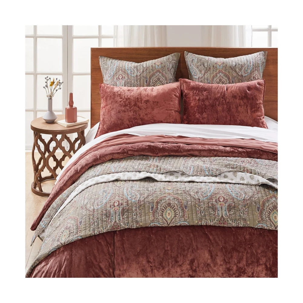 Levtex Home - Abruzzi Full/Queen Quilt - Persimmon/Rust - Velvet - Dot Stitch Quilting - Quilt Size 88 x 92 in. - Polyester Velvet Description Features: Polyester THE ABRUZZI DESIGN: One of our most popular collections, Abruzzi by Levtex Home is bold, striking and rich. The front is a rich persimmon velvet quilted in a sophisticated dot stitch quilting pattern and the reverse is matching microfiber. SOFT AND COMFORTABLE LUXURY: Made from soft poly velvet that will never feel heavy, stiff or uncomfortable, the Abruzzi quilt is filled with a soft, lightweight poly filler giving it an ultra soft feel that you'll simply love. Our quilt is generously sized to give your bedroom a feeling of comfort and luxury. EASY CARE: The Abruzzi quilt is easy to look after. Simply machine wash on a cold, gentle cycle, then line dry or tumble dry at low temperature. COORDINATE YOUR ROOM DECOR: Create a wonderful bedroom space with our quilt and the available coordinated accessories. The rich velvet design brings bold, striking and rich accents into your home and will match a variety of different looks and bedroom decor. You can also freshen your room with matching other items from the Levtex Home collection. Product Details: Material: Polyester Color: Persimmon Brand: Levtex Home Special Feature: Velvet Style: Modern Material: Polyester Color: Persimmon Brand: Levtex Home Special Feature: Velvet Style: Modern Blanket Form: Quilt Age Range (Description): Adult Product Dimensions: 92"L x 88"W Theme: Love Pattern: Dot Recommended Uses For Product: Reading, Napping, Working Seasons: All Fill Material: down-alternative, fiber, Polyester, polyester down_alternative Product Care Instructions: Machine Wash Size: Full/Queen Fabric Type: Polyester Unit Count: 1.0 Count Number of Items: 1 Included Components: One Full/Queen Quilt Fabric Warmth Description: Lightweight Sport: Quilt Model Name: Abruzzi Velvet Spice Quilt UPC: 190945128102 Manufacturer: Levtex Home Item Weight: 5.9 pounds Country of Origin: China Refill: down-alternative, fiber, Polyester, polyester down_alternative Tick-repellent material: 100% Number of pieces: 1 Handling We will ship all orders within day of payment. Delivery We Do Not Ship Outside of the Continental US. Return Policy All items qualify for returns within 30 days of receipt. Buyer is responsible for return shipping on any item that is not damaged. Feedback We take our reputation seriously, we buy and sell online, so we understand the value of trust. If you are unsatisfied with your order, please contact us and we will work with you to resolve it to your satisfaction. On Nov 19, 2024 at 01:35:30 PST, seller added the following information: