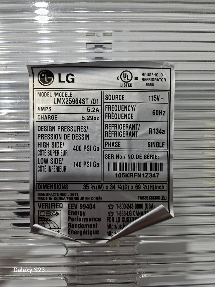 Lg Fridge Model Lmx25964st Part number EAV43060810 NO REFUND OR WARRANTY