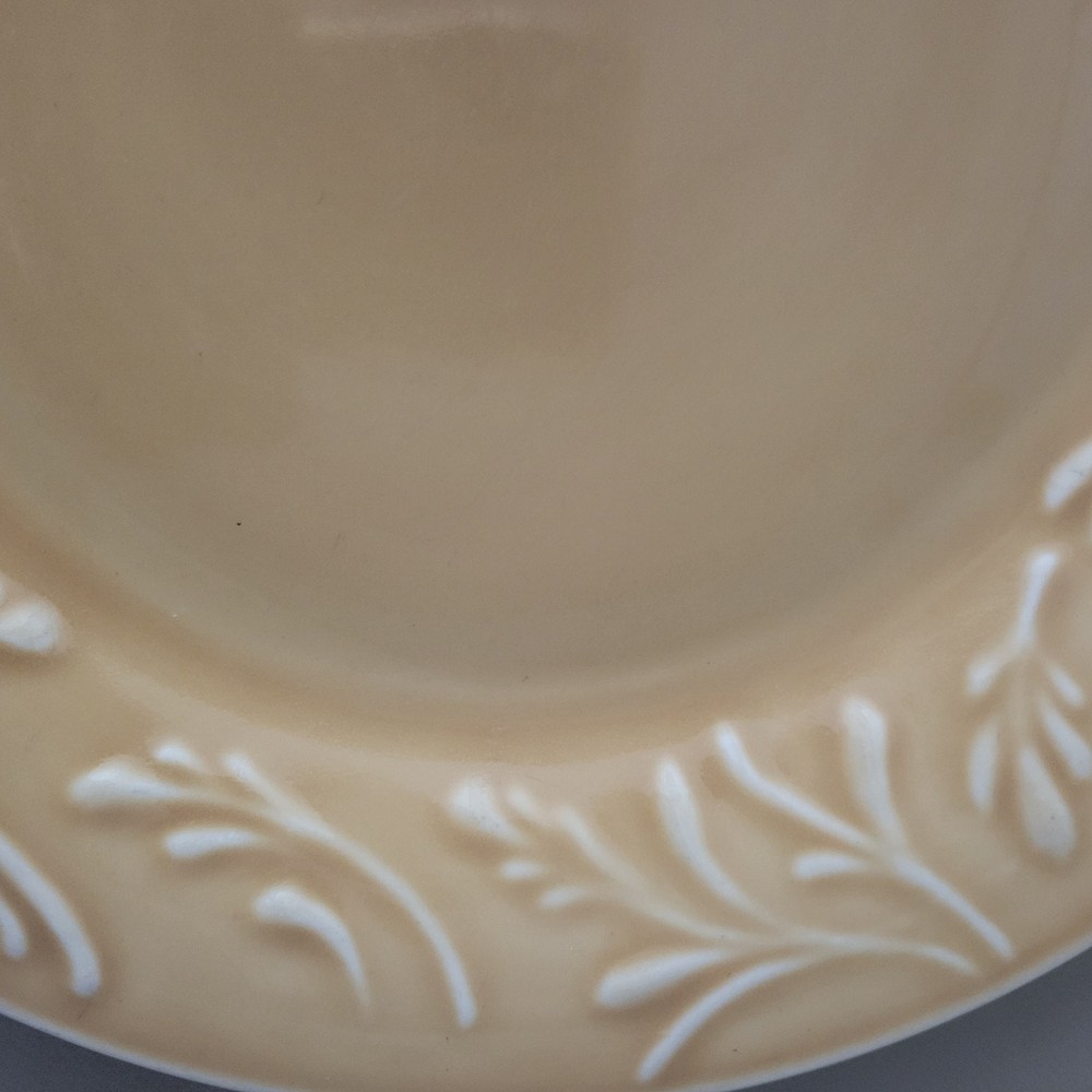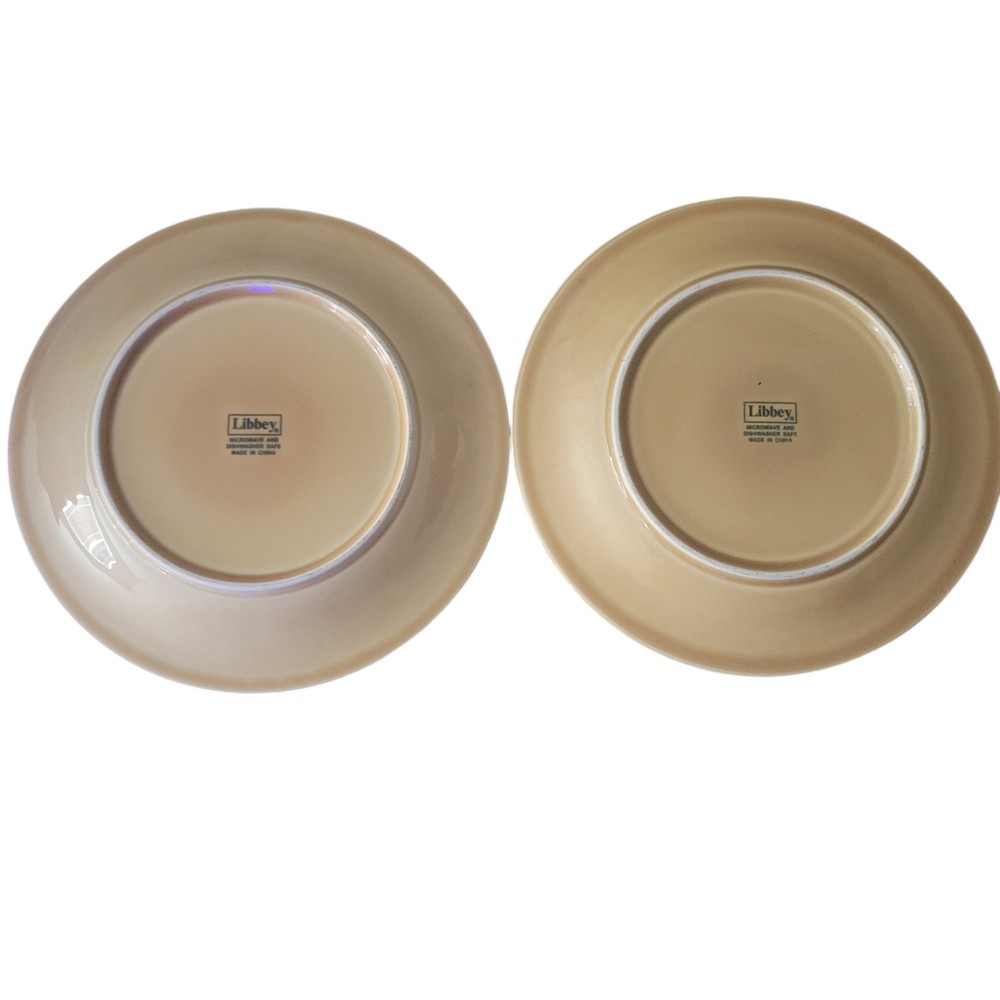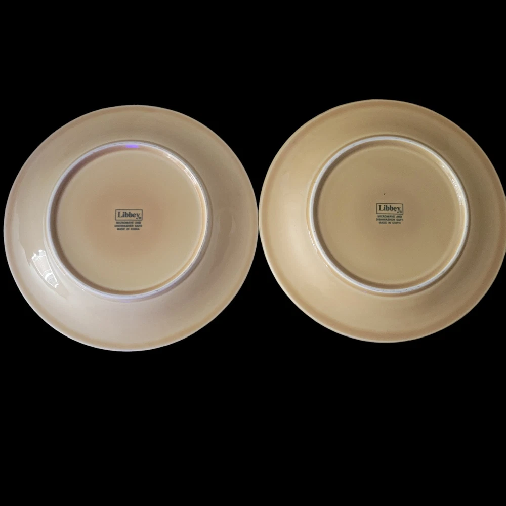 Libbey Lie 14 Dinner Plates Yellow Color Vintage 1990s Embossed Wheat Pattern Trim Dinner Plates 10 1/2 inches wide Microwave Safe Dishwasher Safe They are in good condition with no chips, cracks or crazing. As a pre-owned item there maybe signs of utensil marks. See photos. Stored in a smoke free area.
