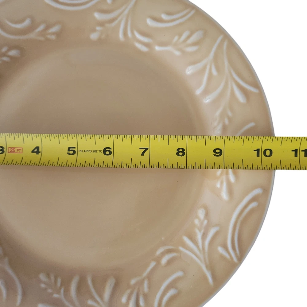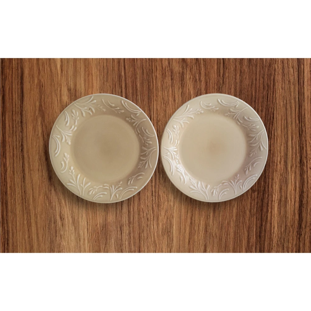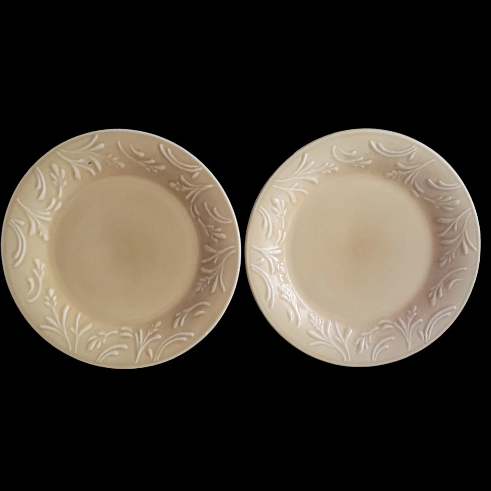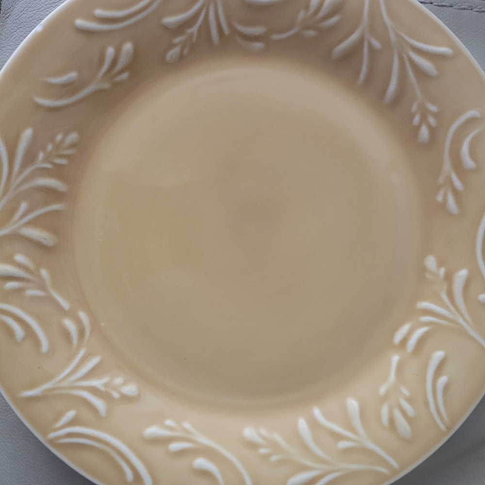 Libbey Lie 14 Dinner Plates Yellow Color Vintage 1990s Embossed Wheat Pattern Trim Dinner Plates 10 1/2 inches wide Microwave Safe Dishwasher Safe They are in good condition with no chips, cracks or crazing. As a pre-owned item there maybe signs of utensil marks. See photos. Stored in a smoke free area.