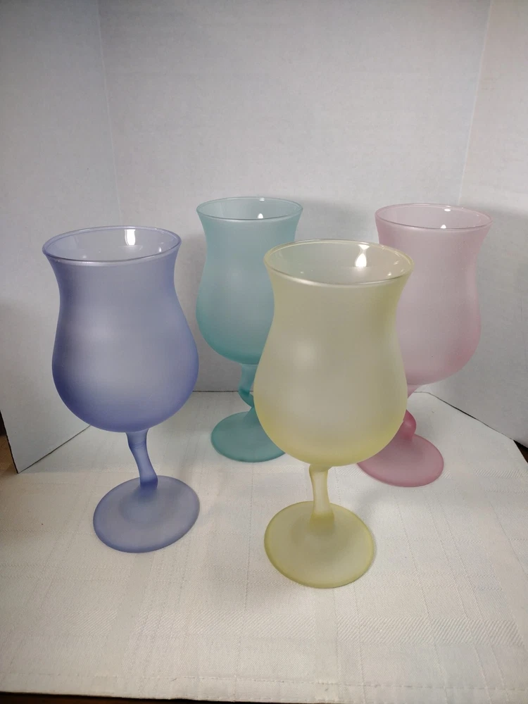 Beautiful cocktail or large juice goblets zigzag stems these have been in a closet satin frosted look. No Chips No Cracks. Holds 12 ozs