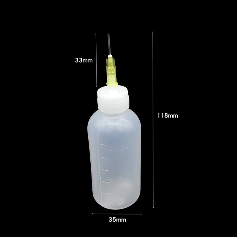 Description Condition: 100% new Color: As picture show Material: plastic Bottle capacity: 50 ml Package include: 1 pcs Size Bottle bottom diameter 3.5cm, Bottle height 9.6cm Bottle mouth diameter 4mm, Needle length 3..3cm Notice If you have any questions about the product or logistics, please contact us in time. Thank you for your understanding On 5-Dec-2024 at 18:02:52 EST, seller added the following information: