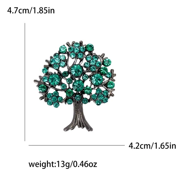 Add a touch of elegance to any outfit with this stunning Life Tree Brooch. The brooch features a unique asymmetrical shape and measures 6*6.8cm in size. It is perfect for any occasion, including engagements, weddings, graduations, birthdays, and more. The brooch is made of high-quality alloy metal and features a beautiful green shine stone that will catch everyone's eye. This brooch is a great gift for women, girls, and ladies. It is customisable, and the adjustable feature makes it easy to wear. The brooch is solitaire and features a round crystal stone that adds a touch of beauty to any outfit. This brooch is perfect for those who love animals and insects and is a great addition to any jewellery collection.