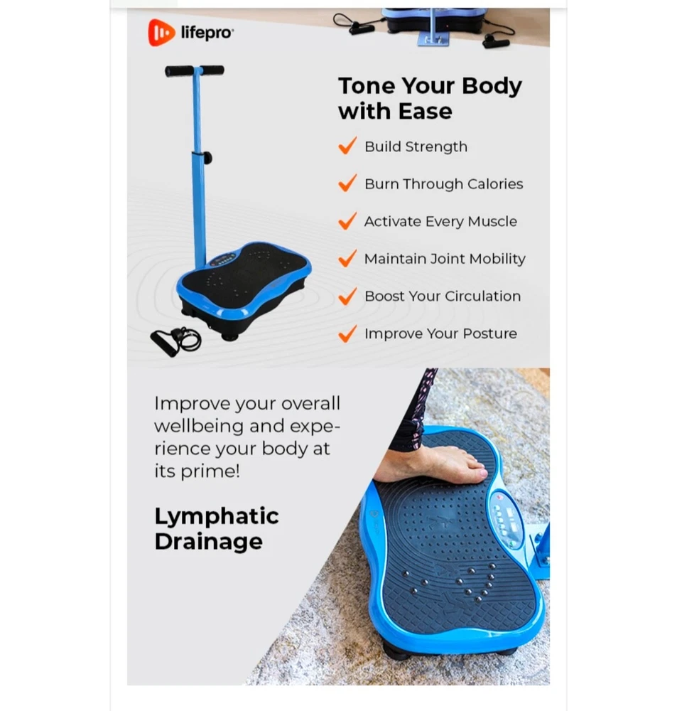 The Life Pro vibration exercise machine is designed for full-body workouts in the gym and training settings. This machine uses vibration technology to enhance fitness routines and improve muscle strength and endurance. It is a versatile piece of fitness equipment suitable for those looking to add variety and challenge to their workout routine. USED ONLY ONE TIME. Like NEW.
