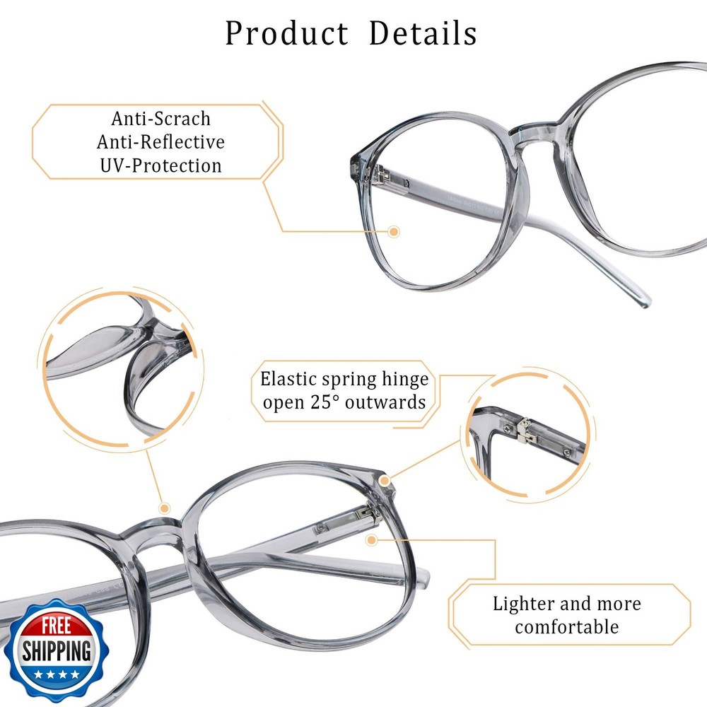 LifeArt Blue Light Blocking Glasses, Anti Eyestrain, Computer Reading Glasses with Spring Hinge, Gaming Glasses, TV Glasses for Women Men, Anti Glare (Clear Grey, No Magnification) Features Reflect and filter blue light, prevent color distortion, 7-layer anti-reflective coating to reflect and filter blue light, reduce eyestrain and sleep better. High light transmittance with no noticeable yellow tint to prevent color distortion, minimize glare from digital screens. Thinner and durable, the multi-layer coating is combined into a single layer with a thickness of only 10um, increases the surface hardness of the lens, prevent scratches and abrasion. Magnification glasses option, with +0.25 to + 6.0 magnified lenses, helps you more clearly see objects that are 12-14 inches away (screens, books, laptops, etc.) if they were otherwise out of focus or cause further eye strain. Classic round frame design, ultra-lightweight, universal size fits most face shapes. Rest assured to buy, we stick to pay attention to product quality, any problem for this product, just contact the seller without any hesitation and we will provide you the best service! Shipping Free & Fast Shipping: We offer free shipping to most of the USA with a normal delivery time of 3-7 days. However, due to the current situation, additional delivery time (up to 3 weeks) may be required for some items. Alternative Carriers: We may use alternative carriers (e.g., USPS, FedEx, UPS) to ensure your package arrives safely and on time. Due to the use of multiple carriers, we are unable to provide a tracking number automatically. Handling Time: Orders are processed and shipped within 1-2 business days of receiving cleared payment. Shipping Restrictions: Shipping to Alaska, Hawaii, Puerto Rico, Guam, and other US territories may incur shipping charges or delivery restrictions. Please contact us before ordering, or your order can be refunded/cancelled. State Restrictions: Certain items may not be shipped to California due to state regulations. Contact for Tracking Updates: If you require tracking updates or have any concerns about the delivery of your order, please feel free to contact us, and we will be happy to assist you. Return Policy 30-Day Hassle-Free Returns: If you are not completely satisfied with your purchase, you can return the item for free within 30 days of receiving it for a full refund or exchange. Easy Return Process: Contact us, and we will provide you with a prepaid return shipping label and detailed instructions. No Restocking Fee: There are no restocking fees for returns. However, the buyer is responsible for return shipping costs if the return is not due to a seller"s error. Refund Processing: Refunds will be processed within 1 business day of receiving the returned item in its original condition. Feedback Your feedback is extremely important to us. We strive to provide the best products and customer service possible. If you are satisfied with your purchase, please take a moment to leave us a positive review. If you have any concerns or issues with your order, please contact us before leaving negative feedback. We are committed to resolving any problems and ensuring your satisfaction. Contact Us If you have any questions or concerns, please feel free to reach out to our customer support team. You can contact us through the eBay messaging system. We are available Monday to Friday, 9:00 am to 5:00 pm EST, and we will do our best to respond to your inquiry within 24 hours. Thank you for supporting our small family business!