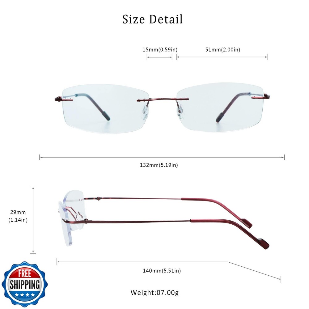 LifeArt Blue Light Blocking Computer Reading Glasses, Men’s and Women’s Rimless Frame, Anti Eyestrain, +2.25 Magnification Features Advanced Blue Light Blocking Lenses: Reflect and filter blue light with a 7-layer anti-reflective coating, reducing glare, preventing color distortion, and improving sleep by minimizing eye-strain during screen time. Superior Clarity & Durability: High light transmittance helps ensure no noticeable yellow tint, maintaining true colors, while the ultra-thin 10μm multi-layer coating enhances scratch resistance and lens longevity. Customizable Magnification Options: Available in strengths from +0.00 to +4.00, these magnified lenses provide sharp focus for close-up tasks like reading, working on laptops, or viewing screens. IMPORTANT: Please select the correct magnification so your order can be properly filled. The one you choose now is +2.25 Magnification Lightweight & Versatile Design: Classic rimless design with an ultra-lightweight build (0.28oz) create a comfortable, universal fit suitable for most face shapes and all-day wear. Refer to images for glasses dimensions. Premium Quality Assurance: Our eyewear is designed to meet the highest standards of durability and performance. We have a 30-day free return policy. Contact us anytime for support or if you experience any issues. Shipping Free & Fast Shipping: We offer free shipping to most of the USA with a normal delivery time of 3-7 days. However, due to the current situation, additional delivery time (up to 3 weeks) may be required for some items. Alternative Carriers: We may use alternative carriers (e.g., USPS, FedEx, UPS) to ensure your package arrives safely and on time. Due to the use of multiple carriers, we are unable to provide a tracking number automatically. Handling Time: Orders are processed and shipped within 1-2 business days of receiving cleared payment. Shipping Restrictions: Shipping to Alaska, Hawaii, Puerto Rico, Guam, and other US territories may incur shipping charges or delivery restrictions. Please contact us before ordering, or your order can be refunded/cancelled. State Restrictions: Certain items may not be shipped to California due to state regulations. Contact for Tracking Updates: If you require tracking updates or have any concerns about the delivery of your order, please feel free to contact us, and we will be happy to assist you. Return Policy 30-Day Hassle-Free Returns: If you are not completely satisfied with your purchase, you can return the item for free within 30 days of receiving it for a full refund or exchange. Easy Return Process: Contact us, and we will provide you with a prepaid return shipping label and detailed instructions. No Restocking Fee: There are no restocking fees for returns. However, the buyer is responsible for return shipping costs if the return is not due to a seller"s error. Refund Processing: Refunds will be processed within 1 business day of receiving the returned item in its original condition. Feedback Your feedback is extremely important to us. We strive to provide the best products and customer service possible. If you are satisfied with your purchase, please take a moment to leave us a positive review. If you have any concerns or issues with your order, please contact us before leaving negative feedback. We are committed to resolving any problems and ensuring your satisfaction. Contact Us If you have any questions or concerns, please feel free to reach out to our customer support team. You can contact us through the eBay messaging system. We are available Monday to Friday, 9:00 am to 5:00 pm EST, and we will do our best to respond to your inquiry within 24 hours. Thank you for supporting our small family business!