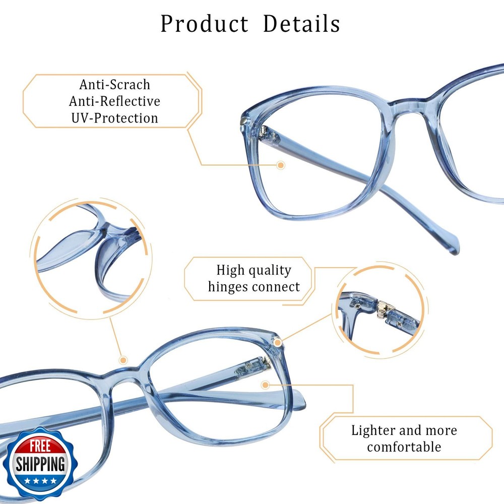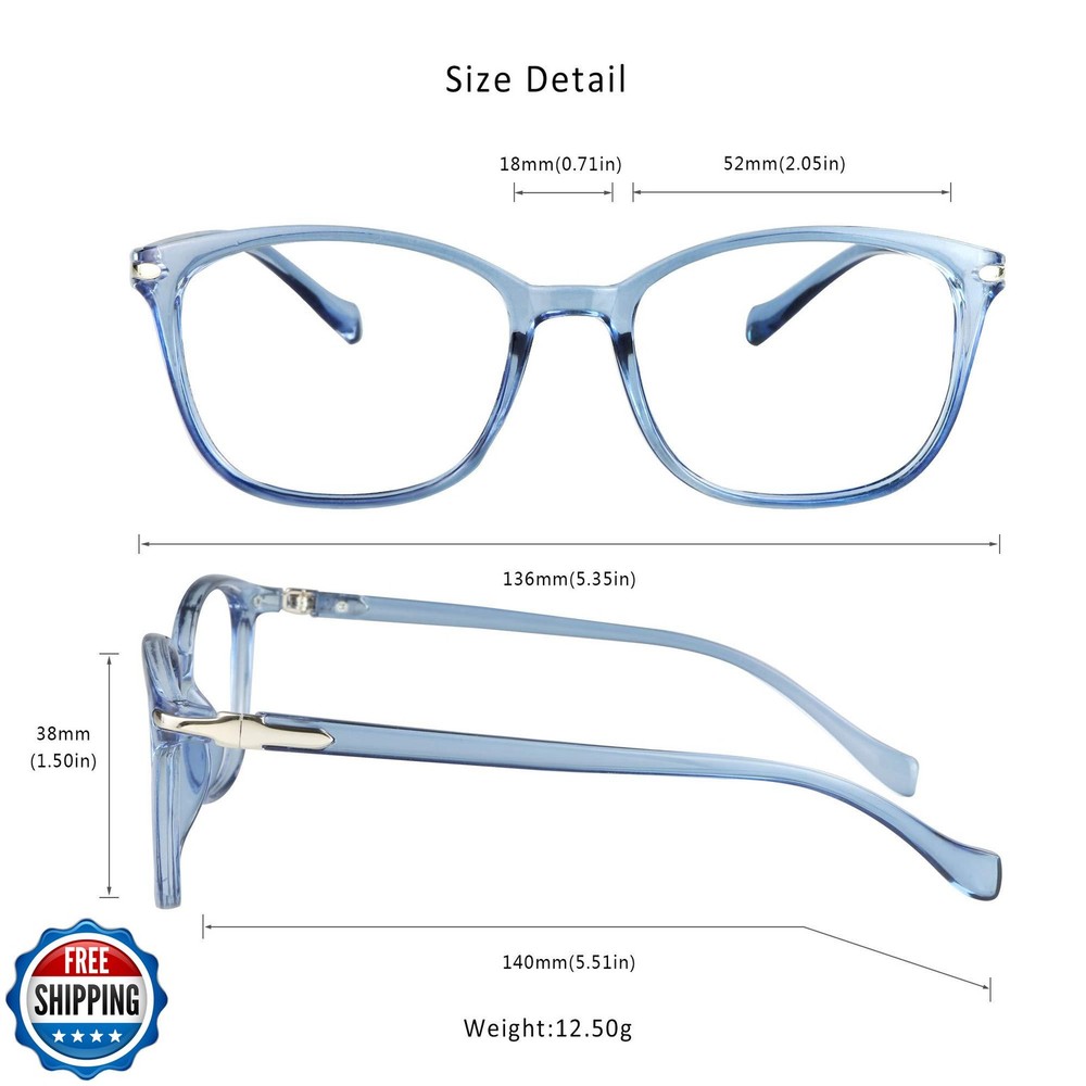 LifeArt Blue Light Blocking Glasses, Anti Eyestrain, Computer Reading Glasses, Gaming Glasses, TV Glasses for Women and Men, Anti Glare (Light Blue, 5.25 Magnification) Features Reflect and filter blue light, prevent color distortion, 7-layer anti-reflective coating to reflect and filter blue light, reduce eyestrain and sleep better. High light transmittance with no noticeable yellow tint to prevent color distortion, minimize glare from digital screens. Thinner and durable, the multi-layer coating is combined into a single layer with a thickness of only 10um, increases the surface hardness of the lens, prevents scratches. Magnification glasses option, with +0.25 to + 6.0 magnified lenses, helps you more clearly see objects that are 12-14 inches away (screens, books, laptops, etc.) if they were otherwise out of focus or cause further eye strain. Classic square frame design, ultra-lightweight, universal size fits most face shapes. Quality is our mission. We hold our products to the highest standard. Please contact us if there are any issues with this item. Shipping Free & Fast Shipping: We offer free shipping to most of the USA with a normal delivery time of 3-7 days. However, due to the current situation, additional delivery time (up to 3 weeks) may be required for some items. Alternative Carriers: We may use alternative carriers (e.g., USPS, FedEx, UPS) to ensure your package arrives safely and on time. Due to the use of multiple carriers, we are unable to provide a tracking number automatically. Handling Time: Orders are processed and shipped within 1-2 business days of receiving cleared payment. Shipping Restrictions: Shipping to Alaska, Hawaii, Puerto Rico, Guam, and other US territories may incur shipping charges or delivery restrictions. Please contact us before ordering, or your order can be refunded/cancelled. State Restrictions: Certain items may not be shipped to California due to state regulations. Contact for Tracking Updates: If you require tracking updates or have any concerns about the delivery of your order, please feel free to contact us, and we will be happy to assist you. Return Policy 30-Day Hassle-Free Returns: If you are not completely satisfied with your purchase, you can return the item for free within 30 days of receiving it for a full refund or exchange. Easy Return Process: Contact us, and we will provide you with a prepaid return shipping label and detailed instructions. No Restocking Fee: There are no restocking fees for returns. However, the buyer is responsible for return shipping costs if the return is not due to a seller"s error. Refund Processing: Refunds will be processed within 1 business day of receiving the returned item in its original condition. Feedback Your feedback is extremely important to us. We strive to provide the best products and customer service possible. If you are satisfied with your purchase, please take a moment to leave us a positive review. If you have any concerns or issues with your order, please contact us before leaving negative feedback. We are committed to resolving any problems and ensuring your satisfaction. Contact Us If you have any questions or concerns, please feel free to reach out to our customer support team. You can contact us through the eBay messaging system. We are available Monday to Friday, 9:00 am to 5:00 pm EST, and we will do our best to respond to your inquiry within 24 hours. Thank you for supporting our small family business!