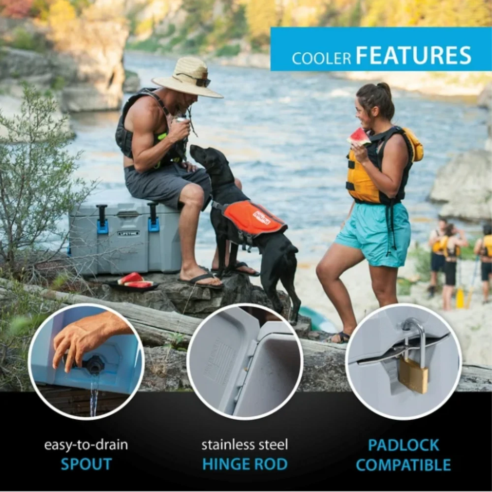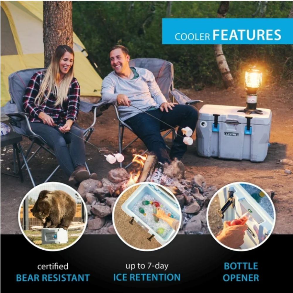 WE SHIP WITHIN 3-10 DAYS FROM USA We don’t ship items to PO box addresses, warehouse Free Shipping – Free Returns – Money Back Guarantee If you have any problem with the product, PLEASE contact me directly via eBay message, Please do not open a dispute because we cannot help if you open a dispute. Thank you very much! Lifetime 55qt Bear-Resistant Camping Cooler, Premium High Performance, Ice Retention, Hard Cooler, 60 Can Capacity, Light Gray About this item Product details The Lifetime New High-Performance Polyethylene Cooler is perfect for anywhere you want to go. Its performance exceeds most premium-priced coolers both in strength and in the all-important ice retention. With an insulated lid and body that provides strength, protection, and insulation, the Lifetime Cooler is light enough for everyday use, solid enough to keep your ice cold, and durable enough to go anywhere you go. With a 5-year warranty, up to 7 days ice retention, and room for 60 cans with ice, the Lifetime Cooler will more than stack up with the competition. Lifetime 55 Quart High Performance Cooler, 90949: Up To 7-Day Ice Retention Durable Stainless Steel Hinge Rod Dual Purpose Grip and Slide Feet Two Rubber Latches - Easily Opened with One Hand Easy-to-Drain Spout with Garden Hose Compatibility Stainless Steel Bottle Opener with Padlock Compatibility Heavy-Duty Polyethylene Construction Certified to Withstand a Bear For Up To an Hour Outside Dimensions: 27 in. L x 17.6 in. W x 17.3 in. H (68,6 cm L x 44,7 cm W x 43,8 cm H) Interior Dimensions: 19.5 - 22 in. L x 10.7 - 13.2 in. W x 12.5 in. H (49,5 - 55,9 cm x 27,3 - 33,6 cm x 31,7 cm) Volume: 55 quart (52,05 Liters) Weight: 23.4 lb. (10,6 kg) Ice RetentionUp To 7 Days Can Capacity: 60 Cans Warranty: 5 Year Limited info: Specifications Features No features description available Assembled Product Dimensions (L x W x H) 27.00 x 17.60 x 17.30 in