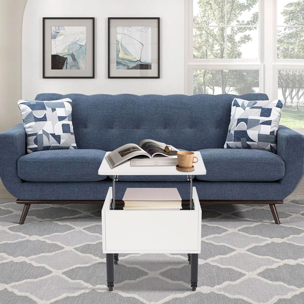 Lift Top Coffee Table, Coffee Tables, Modern Coffee Table Description This liftable coffee table, as the wisdom of modern home design, adds a touch of style and convenience to your home living space with its unique liftable design and practical functions. It is made of high-quality materials and fine craftsmanship to ensure high stability and durability. Even in frequent daily use, it can maintain its elegant form and accompany your family for a long time. Key Features Safe and Durable: It is made of high-quality solid wood board and spray molding iron bracket, which is wear-resistant, rust-resistant, and durable to meet your long-term use needs. Moreover, the E0 grade environmentally friendly board does not emit irritating odors, making it safer for you to use. Stable Structure: Th Lift Top Coffee Table, liftable Coffee Tables, Modern Coffee Table classic white DESCRIPTION Lift Top Coffee Table, Coffee Tables, Modern Coffee Table Description This liftable coffee table, as the wisdom of modern home design, adds a touch of style and convenience to your home living space with its unique liftable design and practical functions. It is made of high-quality materials and fine craftsmanship to ensure high stability and durability. Even in frequent daily use, it can maintain its elegant form and accompany your family for a long time. Key Features Safe and Durable: It is made of high-quality solid wood board and spray molding iron bracket, which is wear-resistant, rust-resistant, and durable to meet your long-term use needs. Moreover, the E0 grade environmentally friendly board does not emit irritating odors, making it safer for you to use. Stable Structure: The stable structure and thickened support tubes enable it to withstand a weight of approximately 66.14 lbs, allowing you to use it with confidence. Top Lifting Design: It features a unique liftable worktop that allows you to work, drink tea, or eat comfortably at the coffee table without bending over. The hydraulic cushioned lifting device ensures that the tabletop lifts gently and smoothly for smoother use. Movable and Fixable: 4 universal wheels allow you to easily move it around, and its brake-equipped design helps you better secure it and increase the stability of use. Easy to Maintain: The simple construction and smooth surface allow you to simply wipe off surface dust with a damp rag, which greatly reduces the cleaning burden in our busy modern life. Elegant Appearance: The square minimalist design, combined with the classic white color, allows it to blend into various home decoration styles and enhance the style of the living space. Flexible Installation: It supports two modes of universal wheel and fixed foot mounting to meet your diversified needs, so you can choose any way of using it according to your needs. Exquisite Gift: You can give this exquisite coffee table to your friends, paired with a novel and a cup of coffee(not included), so they can also enjoy a relaxing moment in the warm sunshine. Customer Service: Communication is the best way to solve problems. If you have any problems, please feel free to contact us. We will reply and solve the problem for you as soon as possible. Details Round Edges: The smooth and rounded edges soften the product lines for a more beautiful appearance, as well as avoid scratching your skin during installation, cleaning, and use. Hidden Storage Compartment: The storage compartment below the desktop provides you with additional space to store books, remote controls, snacks, and other items, making it more convenient to use. Application It is great for use in the living room, study, bedroom, office, hotel, and more as a bedside table, sofa side table, etc. It can hold cosmetics, books, newspapers, laptops, magazines, snacks, drinks, cups, sundries, and so on. Specification Color: White Style: Modern Shape: Square Material: Solid Wood, Iron Process: Spray Molding Assembly Required: Yes Mounting Type: Freestanding Load Capacity: About 30kg/66.14 lbs Desktop Size(L*W): 55*55cm/21.6*21.6in Storage Compartment Size: 48*48*20cm/18.9*18.9*7.9in Product Height: 48cm/18.9in (Lowered), 61cm/24in (Raised) Package Size: 67*63*14cm/26.38*24.8*5.51in Gross Weight: 9kg/19.84 lbs Net Weight: 8.5kg/18.74 lbs Package Included 1*Liftable Coffee Table 4*Universal Wheels 4*Support Feet 1*Screwdriver Other Accessories for Assembly Notes Please confirm the product dimensions before purchasing. Please use the product within its weight capacity to avoid damage. Please allow the slight color difference caused by the shooting light and 1-3cm error due to manual measurement, and make sure you do not mind before ordering. Welcome to highcredit1188 ~ 😊 If you have any question , please contact us , and we will reply you as soon as possible. Payment Delivery details Terms of sales About us Contact us Payment We accept ebay payment 。 Fees such as import duties, taxes are not included in the item price or shipping costs. These charges are the buyer's responsibility. Delivery details Shipping: 2-9 working days to: USA Terms of sales We maintain high standards of excellence and strive for hundred percent customer satisfaction. Feedback is very important to us. We hope that you contact us immediately before you give neutral or negative feedback, so that we can address your concerns. It is impossible to address issues if we do not know about them! About us Your satis faction is our ultimate goal. We work hard to earn your trust and future business. Our certified technicians have tested each item before shipping. The unit comes with 1 year limited warranty on all manufacturing defects. a) If you receive a defective item, you may return it or ask for a discount. Please contact us within 14 days after you receive the package. b) What you returned must be intact and in its original packaging as re? u. Customer is responsible for shipping costs of the returned item. c) We will cover the cost of shipping back t with the shipping rate 
