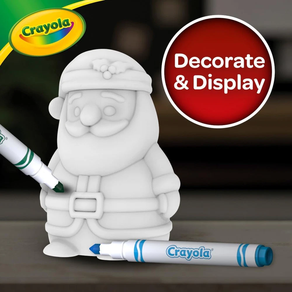 LIGHT-UPS SANTA: Features 1 Light-Ups Santa, 3 Washable Markers (Blue, Black, Lime Green), and an Instruction Sheet. DECORATE YOUR SANTA: Draw your design, illuminate it, and then wipe with a damp cloth to start anew! Use your favorite Crayola Ultra Clean Washable Markers (sold separately) for even more color options! ULTRA CLEAN WASHABLE MARKERS: Add splashes of color with the included markers, or decorate using your favorite Crayola Ultra Clean Washable Marker colors (sold separately). These markers wash easily from skin, clothing, and most painted walls. ERASE & RE-COLOR: The erasable surface allows for creative experimentation with an endless array of designs. LIGHT UP SANTA TOY: Flip the switch and watch as your Santa lights up in Red, White, and Lime Green! (Battery operated with a 4-hour timer). DURABLE & SHATTER-RESISTANT: The Light-Ups Santa is made of durable & shatter-resistant material. HOLIDAY GIFT FOR KIDS: This set makes the perfect stocking stuffer gift for kids ages 4 and up. Light up the holiday season with the recolorable Light Ups Santa from Crayola! This all-in-one toy, holiday decoration, and reusable coloring activity, gives kids a new winter tradition to celebrate. First use the 3 Washable Makers to color directly on the included santa. Give him some stylish winter clothes, decorate his hat, or choose whatever look suits him best that day. You don’t have to worry about making mistakes or changing your mind, because it’s easy to erase your designs with a damp cloth and start again as many times as you choose. When he’s ready for display, let him glow in Red, White, and Lime Green! He would make the perfect stocking stuffer gift for kids, ages 4 & up!